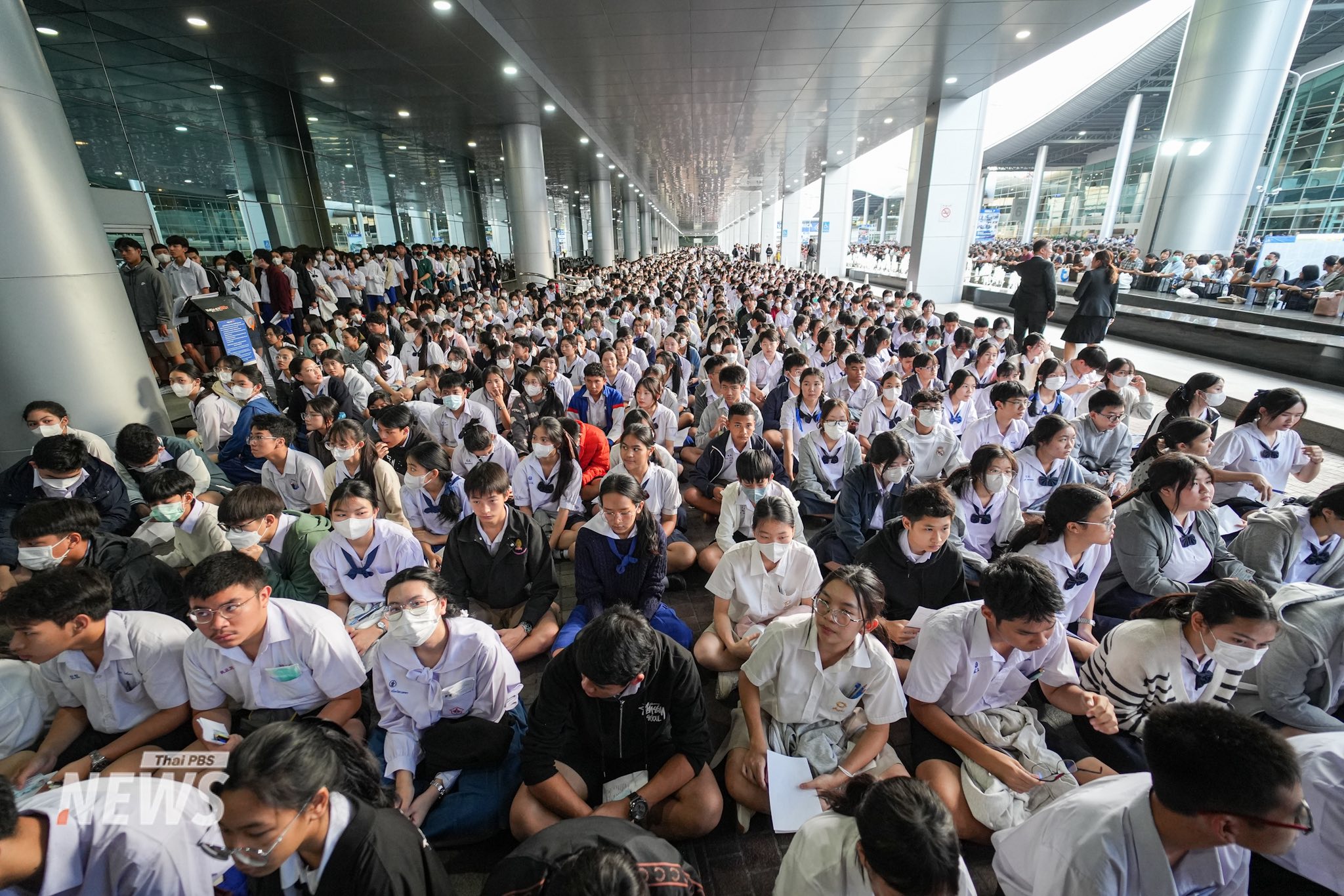 เด็กจำนวนมหาศาลเดินเข้าไปในสนามสอบ