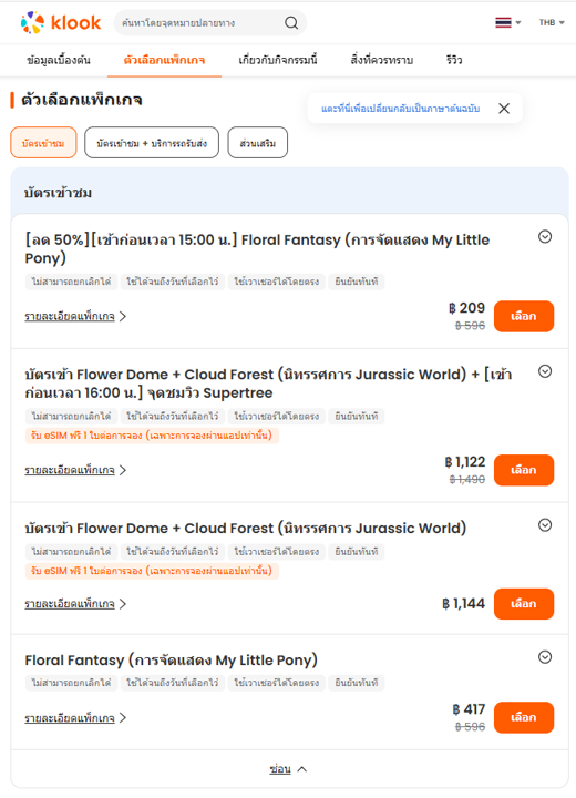 อย่างไรก็ตาม ราคาบนแพลตฟอร์มท่องเที่ยวมักเปลี่ยนได้ตามแพ็กเกจ วันที่ใช้งาน โปรโมชัน และเรตสกุลเงิน ดังนั้นก่อนกดจ่ายจริงควรดู ชื่อแพ็กที่ตรงกัน เช่น มีหรือไม่มี Floral Fantasy, shuttle, หรือกิจกรรมธีมพิเศษรวมอยู่ด้วย ไม่ควรเทียบแค่เลขราคาหน้าแรกอย่างเดียว