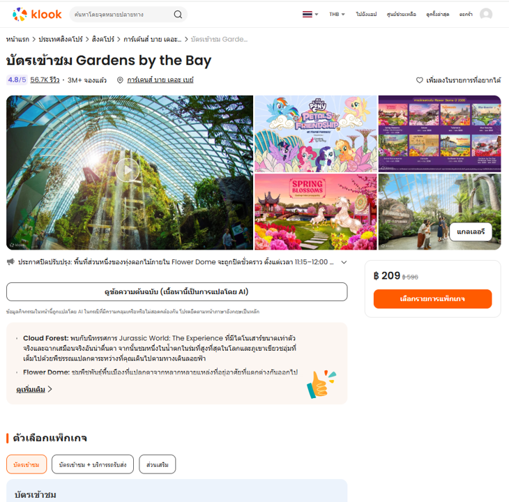 - แนะนำการซื้อบัตรเข้าชม Gardens by the Bay ผ่าน klook.com trip.com ลิ้งก์