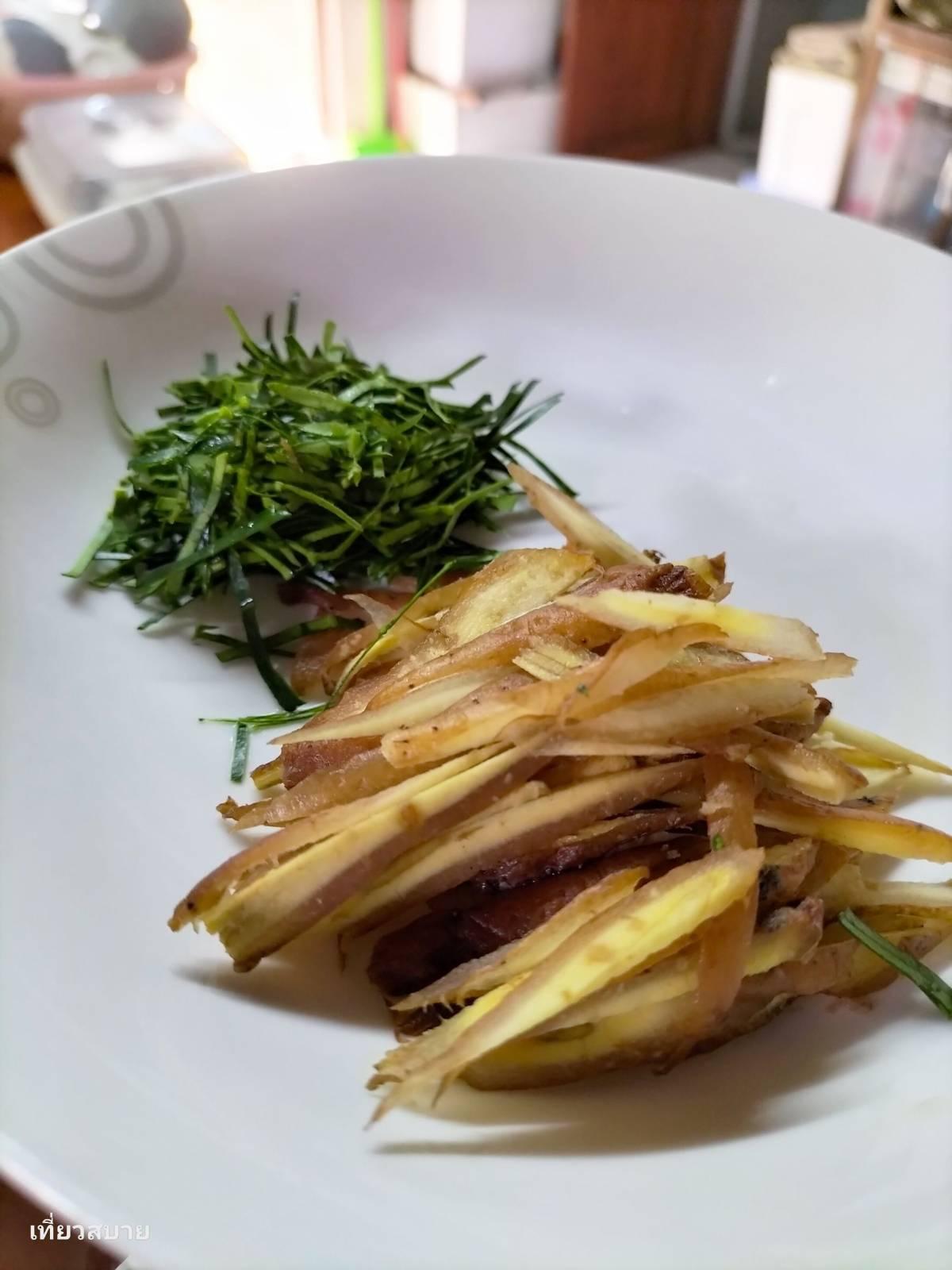 1.ตั้งกระทะ ใส่น้ำมันเล็กน้อย