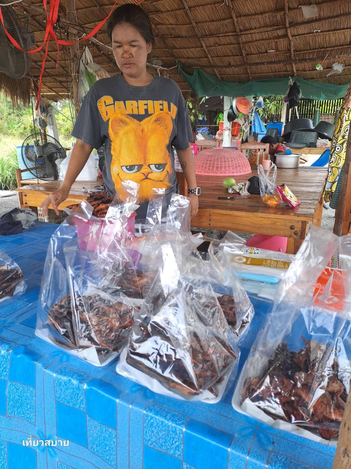 พอทำความสะอาดแล้ว ก็จะนำมาย่างขายให้คนที่ต้องการเอาไปทำอาหาร ราคาขายอยู่ที่ กิโลกรัมละ 350 บาท