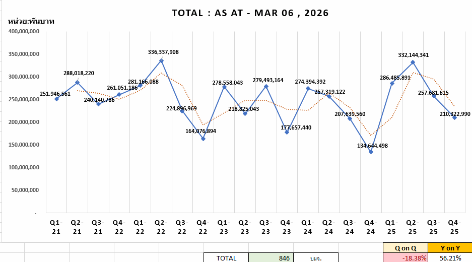 https://pantip.com/topic/43864546 กราฟสรุปผลการดำเนินงาน 20 ไตรมาส : ไตรมาส 4 ปี 63 - ไตรมาส 3 ปี 68 (เรียงตามอักษร) เพียงวันที่ 21 พฤศจิกายน 68