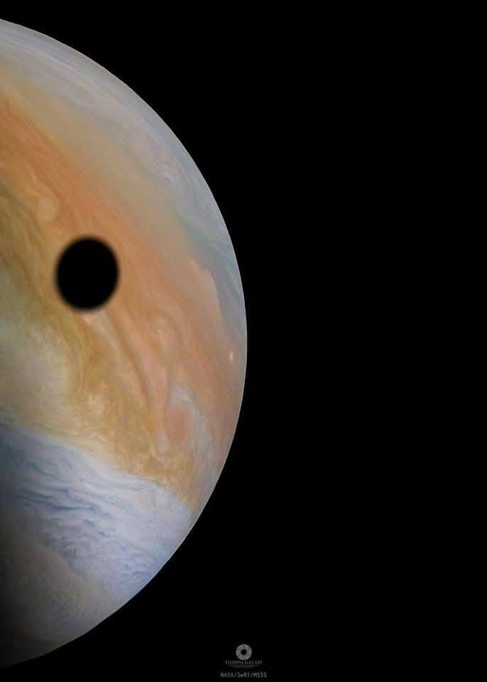 ดวงจันทร์ภูเขาไฟของดาวพฤหัสบดี ฉายเงาลงบนพื้นผิวของดาวดวงใหญ่