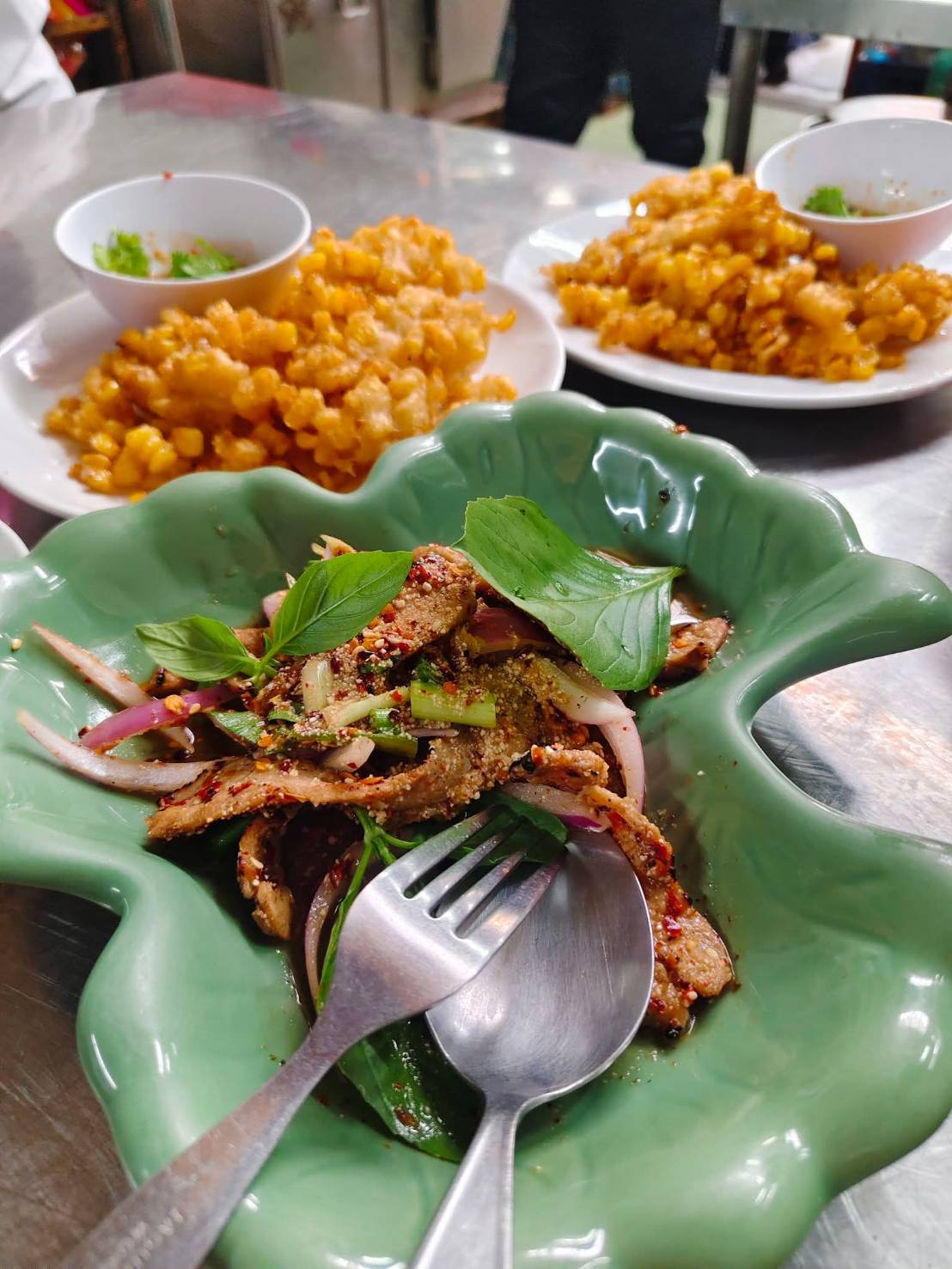 ข้าวโพดทอด คอหมูย่างน้ำตก