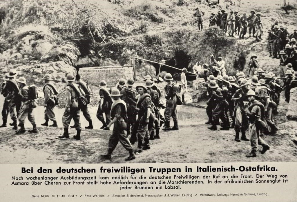 ในตอนแรก อิตาลียังคงวางตัวเป็นกลาง ชาวเยอรมันเหล่านี้จึงถูกกักบริเวณในฐานะผู้ลี้ภัย แต่เมื่ออิตาลีประกาศสงครามเคียงข้างเยอรมนีในวันที่ 10 มิถุนายน ค.ศ. 1940 สถานะของพวกเขาก็เปลี่ยนไป กงสุลเยอรมันในกรุงแอดดิสอาบาบาได้อนุญาตให้อาสาสมัครที่มีประสบการณ์ทางทหารเข้าร่วมรบได้ทันที