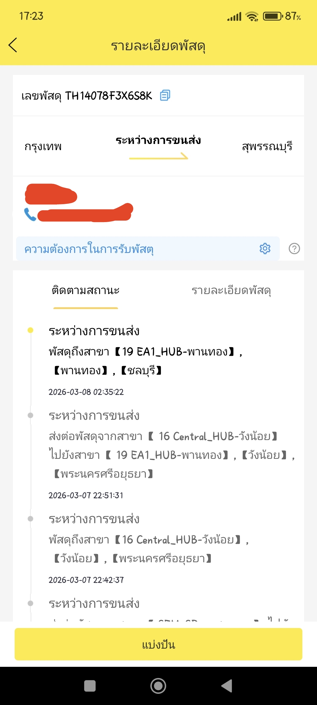 flash express 19 EA1_HUB-พานทอง ดองของทำไมคับ ต้องการใช้ของ กรุณาตรวจสอบด่วน!!