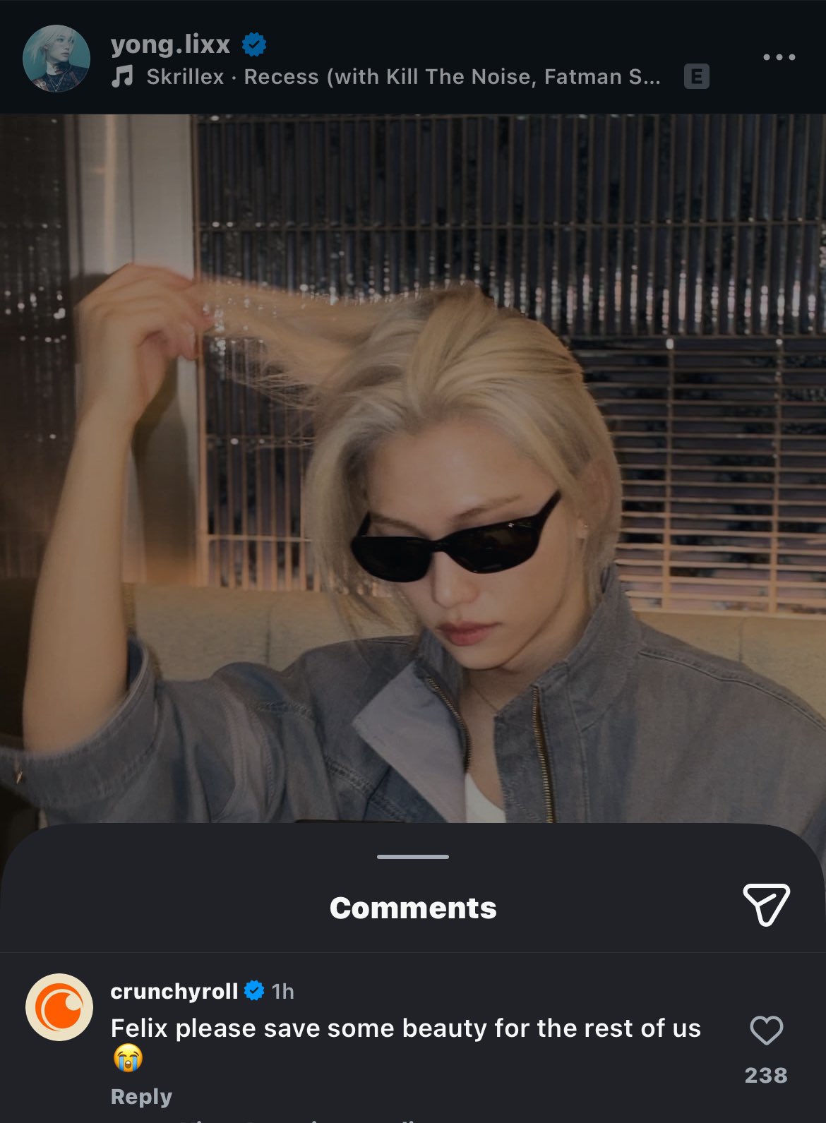 บัญชีทางการของ Crunchyroll กดไลค์และแสดงความคิดเห็นในโพสต์อินสตาแกรมของ FELIX