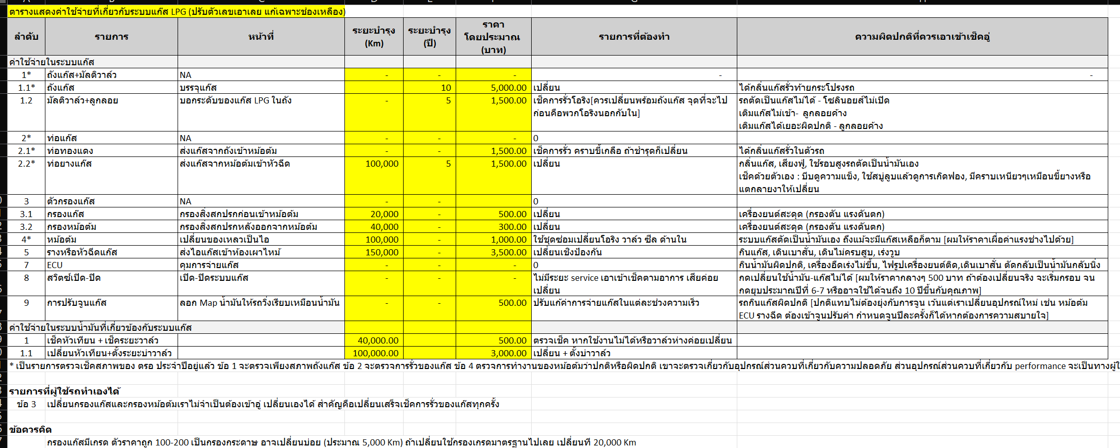 1. ขั้นเเรก list รายการค่าบำรุงรักษาที่ต้องจ่ายๆเเน่ๆ จะรวมทั้งค่าใช้จ่ายในระบบเเก๊สเเละระบบน้ำมันที่เกี่ยวข้องก่อน