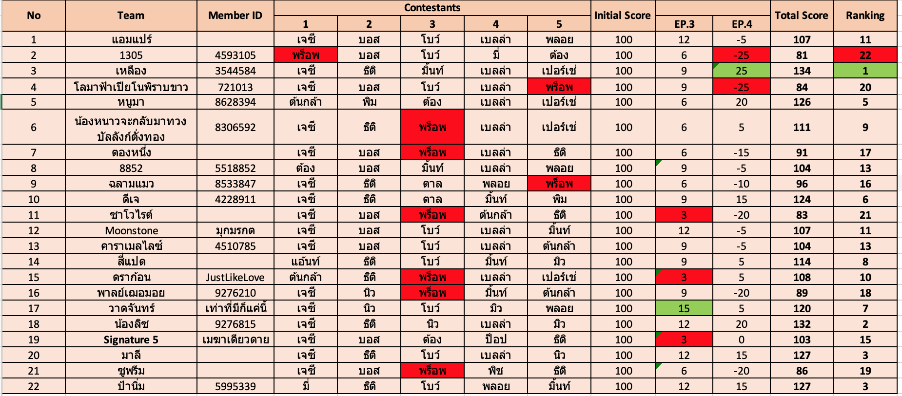 2.ทุกทีมมีคะแนนตั้งต้น 100 นับจากEP.3เป็นต้นไป
