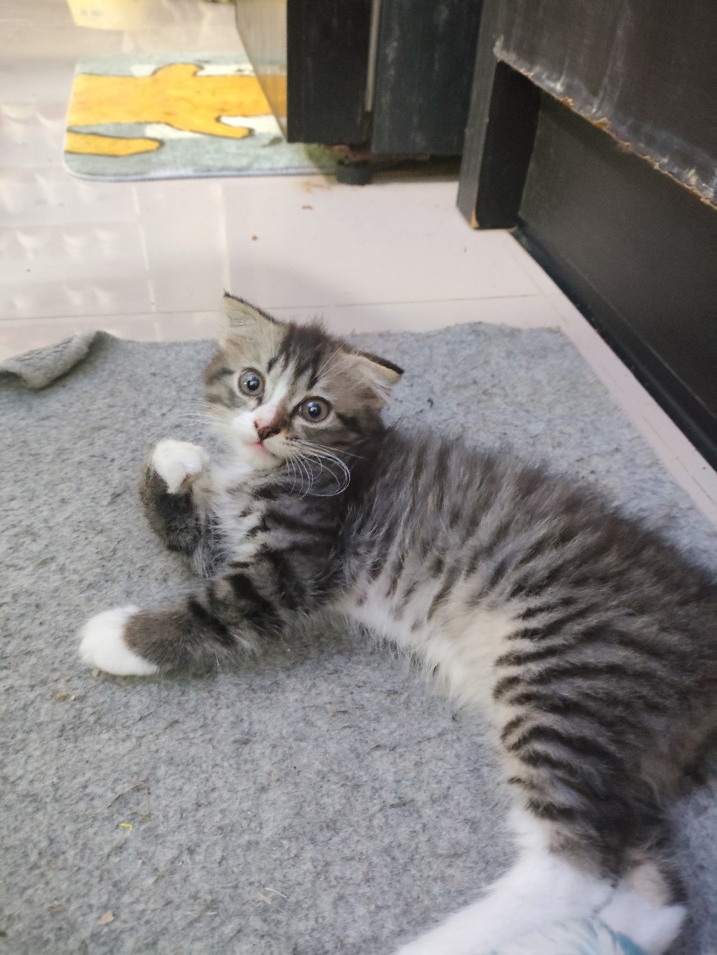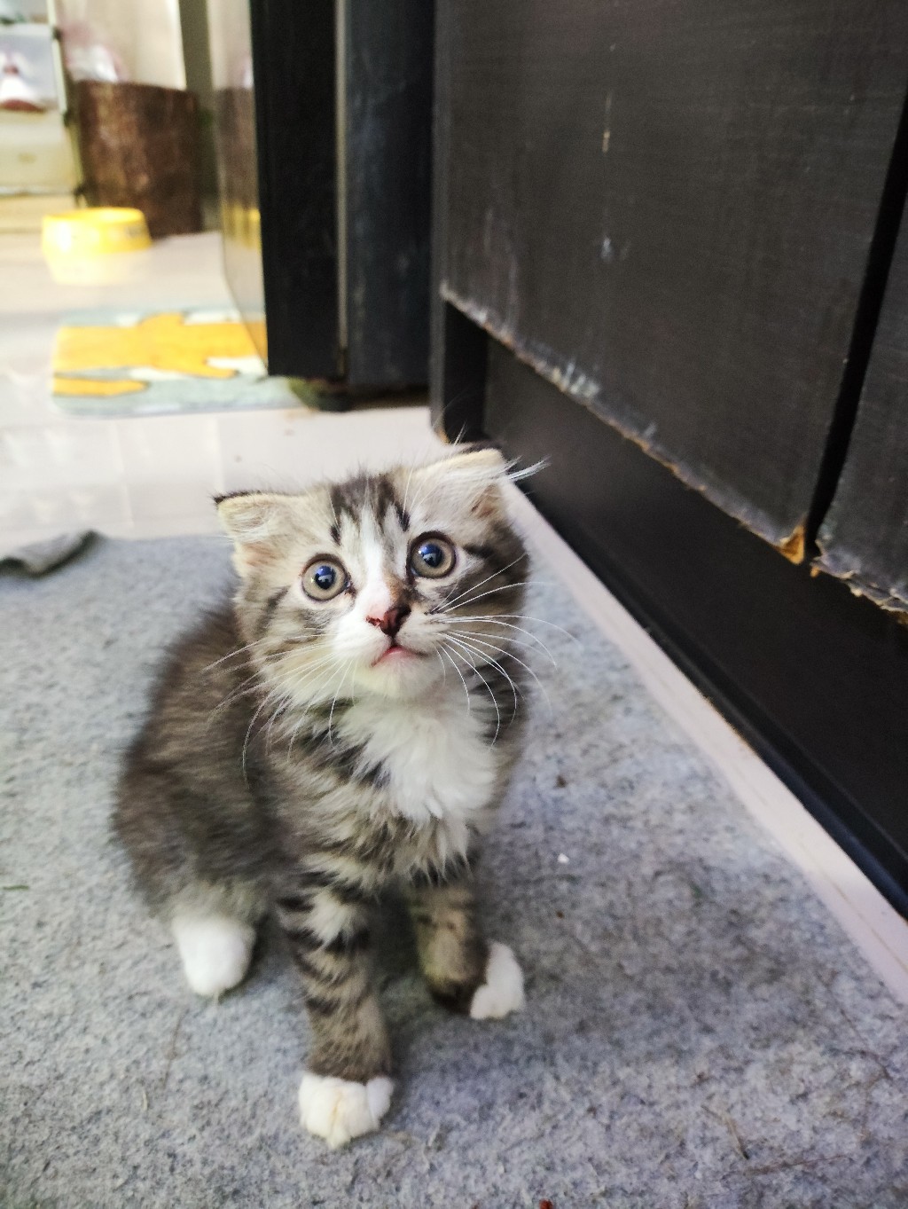 เมื่อเช้าไม่รู้แม่แมวคาบมาทิ้งตอนหน้าร้านไหน ได้ยินเสียงหมาเห่ากัน ไปดูก็เจอเจ้าตัวเล็กสีดำล้วนถูกทิ้งไว้ ยังไม่กล้าจับครับ กลัวแม่เขามาแล้วผิดกลิ่น ว่าจะรอแม่เ
