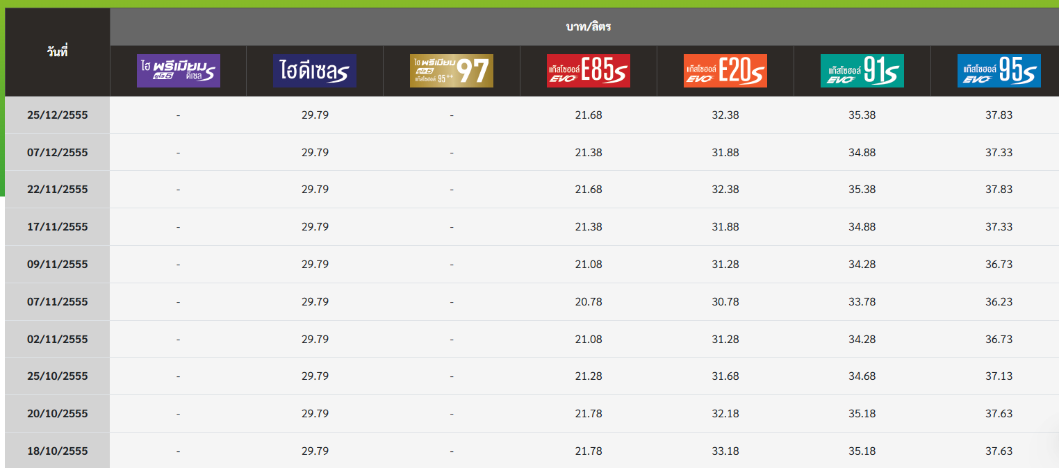 ราคาน้ำมันขายปลีกปั้มไทย ช่วงปี 2554-2558 (2011-2015) ช่วงราคาน้ำมันดิบแตะ 100 USD/