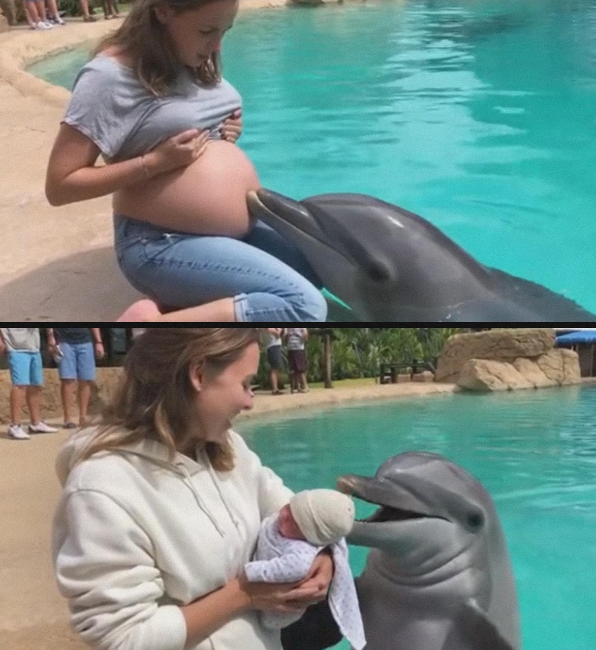 โลมาตัวหนึ่งไม่ยอมหยุด "ตรวจสอบ" หน้าท้องคุณแม่ครรภ์แก่อย่างผิดปกติ คุณแม่ผิดสังเกตรีบไปหาหมอ พบว่า...