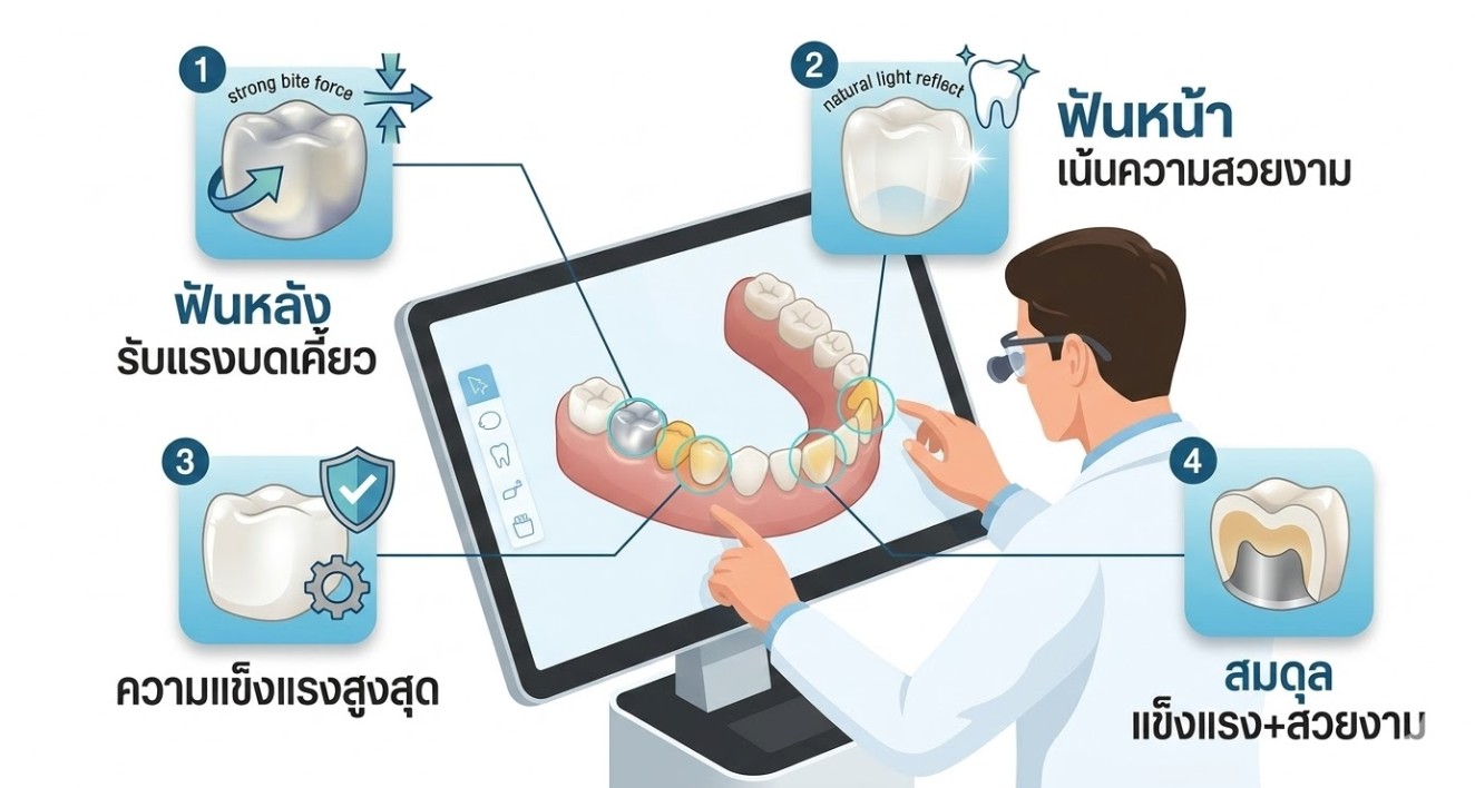 • เข้าใจผิดว่า ของแพงสุดคือดีที่สุดสำหรับทุกคน (ความจริง: วัสดุแพงอาจจะเหมาะกับฟันหน้า แต่อาจไม่แข็งแรงพอสำหรับฟันกรามของบางคน)