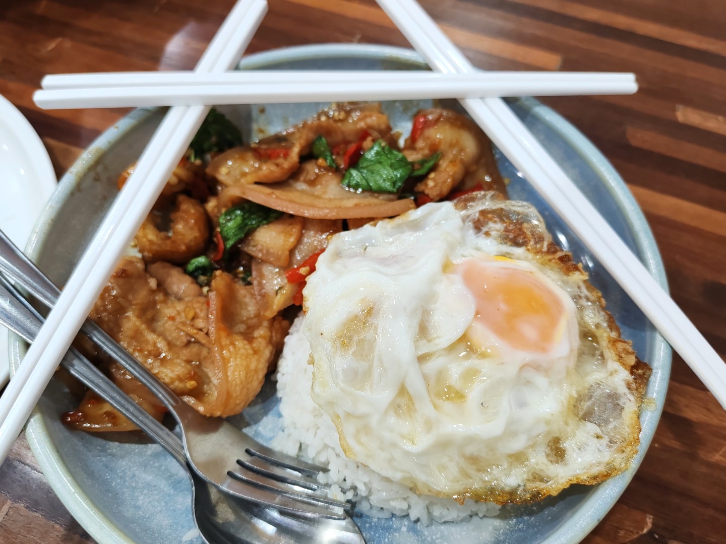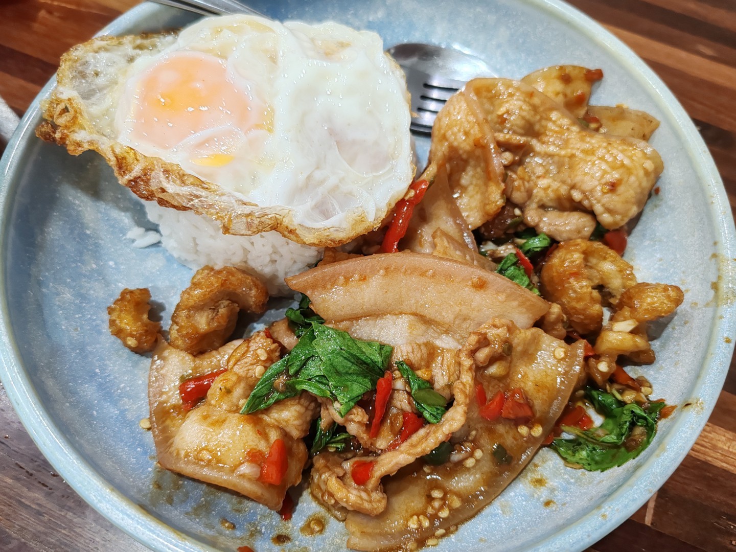 อันนี้กะเพรา 3 ชั้น ใส่กากหมูประหลาดใจ