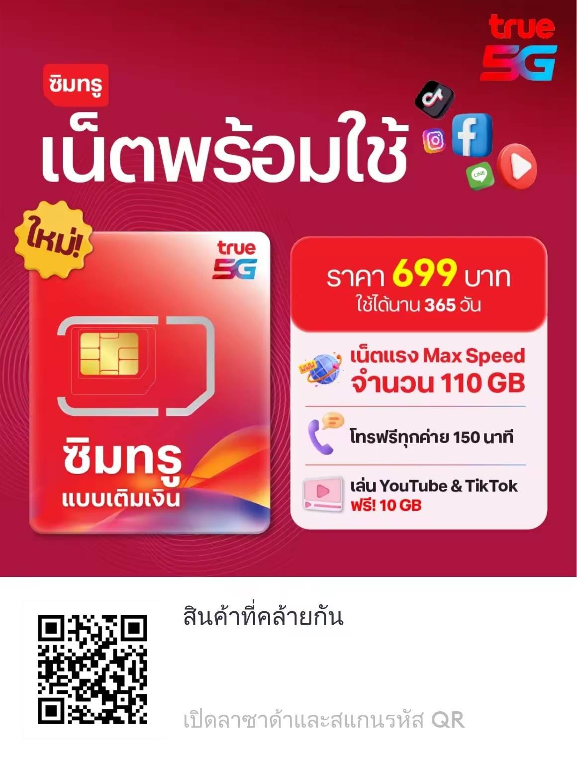 อาทิตย์ก่อนผมซื้อซิมเน็ตพร้อมใช้ทรู 699 บาท ได้เน็ตเต็มสปีด 110 gb / ปี