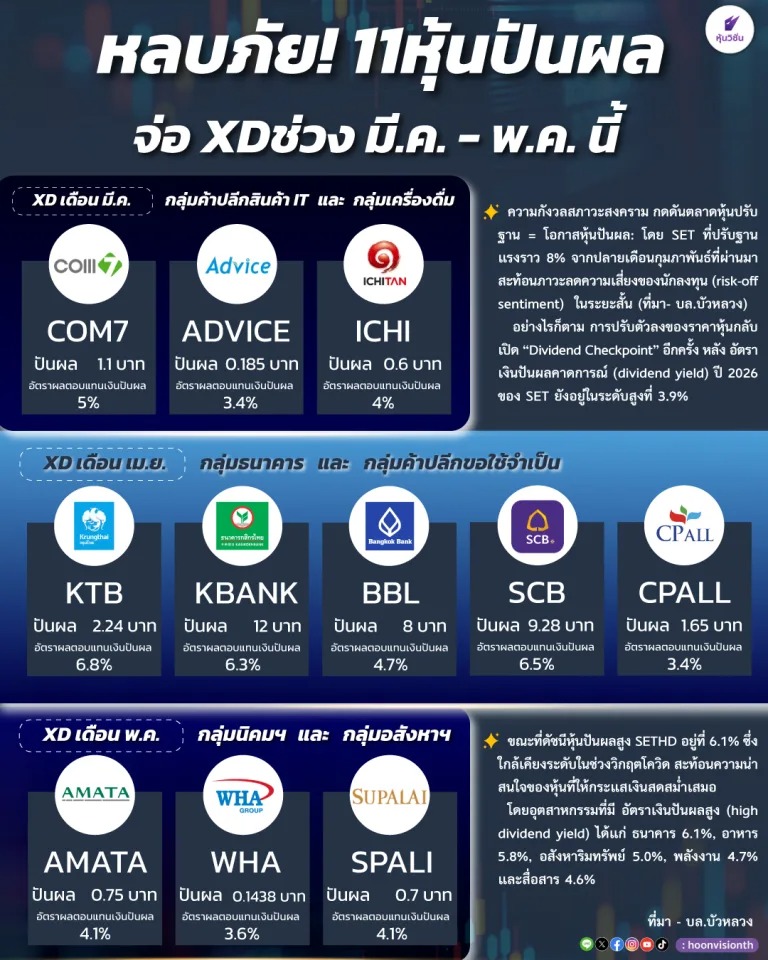 หลบภัย! 11หุ้นปันผล จ่อ XDช่วง 3เดือนหน้า