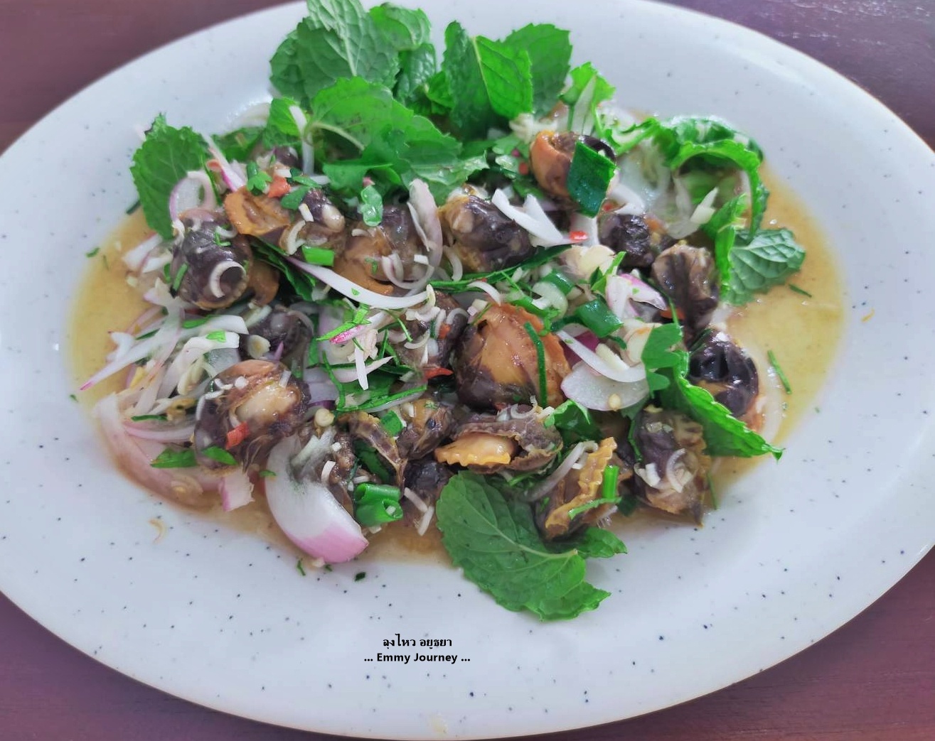 ยำหอยแครงไม่เผ็ด จานละ 120 บาท รสชาติหวาน เค็ม เปรี้ยว