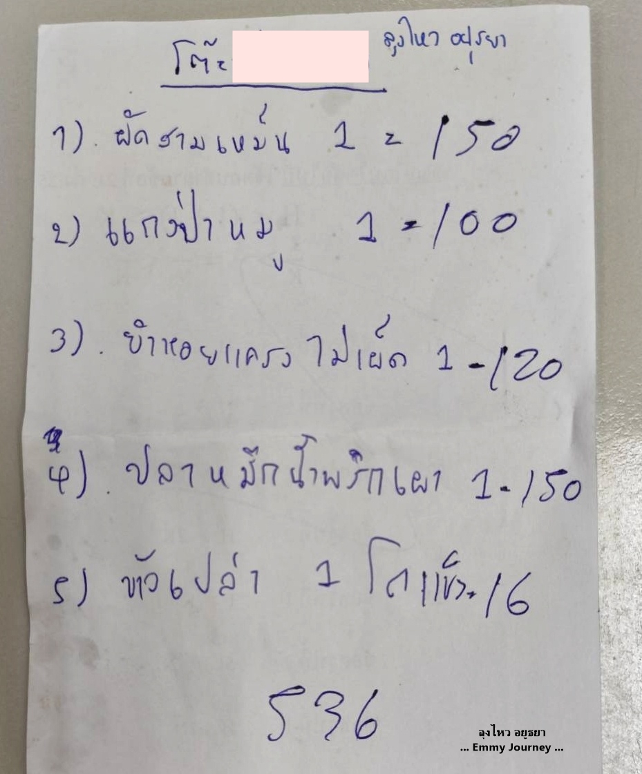 จ่ายไปทั้งหมด 536 บาท (ราคาอาหารเมื่อเดือนสิงหาคม 2568)