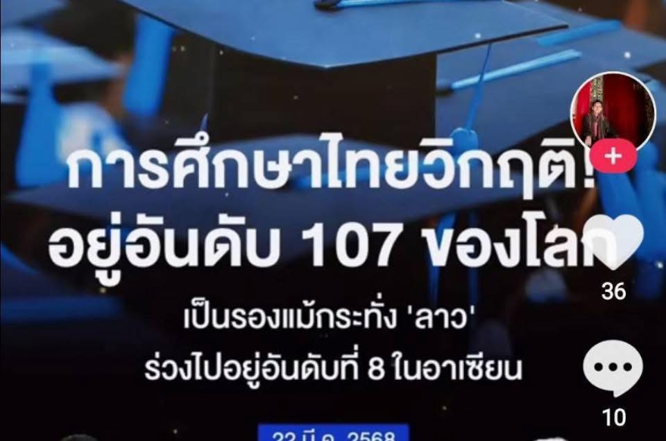 🔥การศึกษาไทยวิกฤติ! เป็นรองแม้กระทั่ง 'ลาว' อยู่อันดับ 107 ของโลก !!🔥