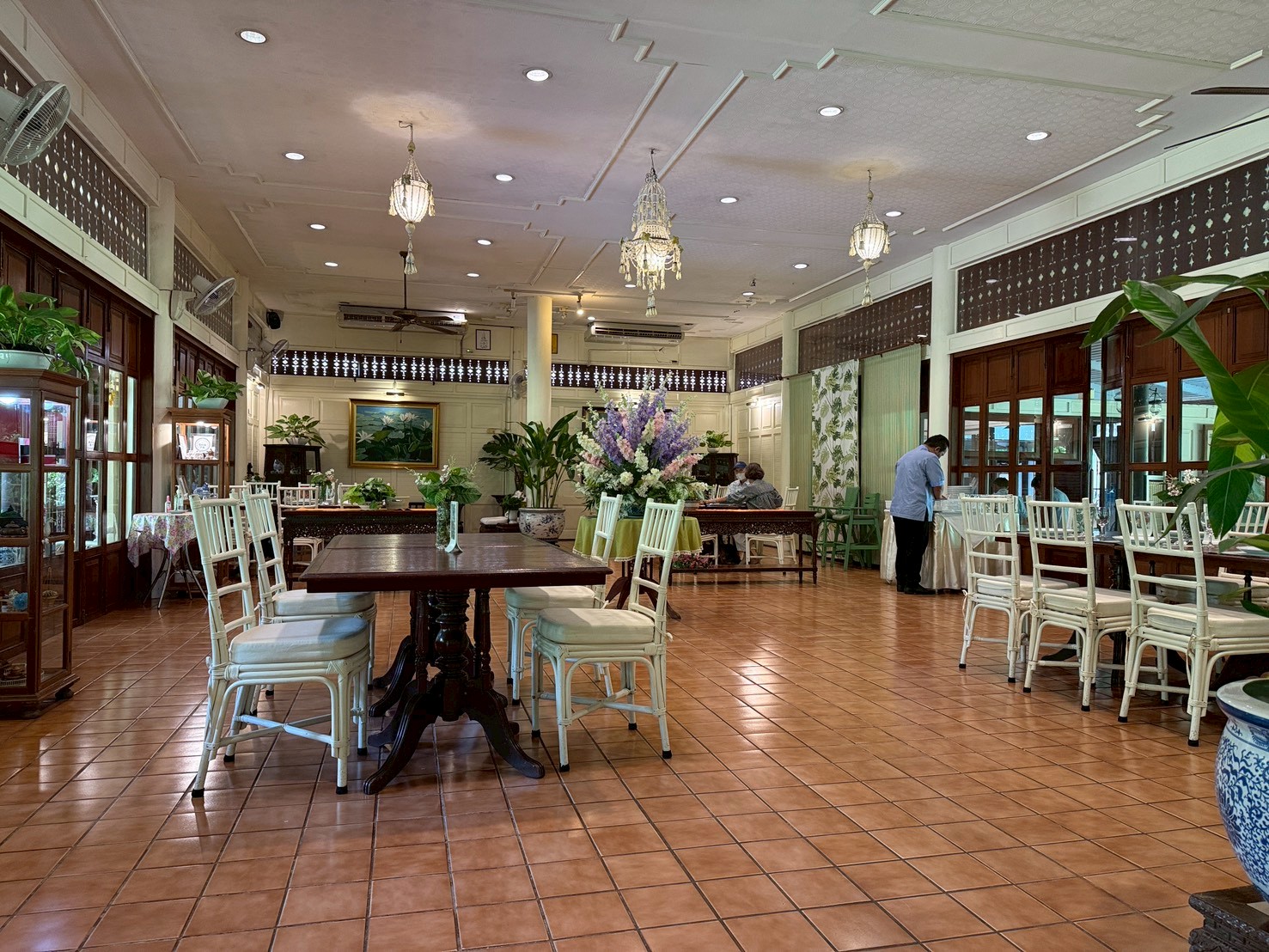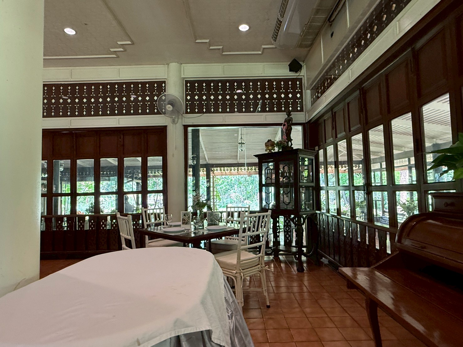 ต้วร้านอาหาร มีโซนห้องแอร์ เป็นบ้านเก่า ตกแต่งสวยงามคลาสิค