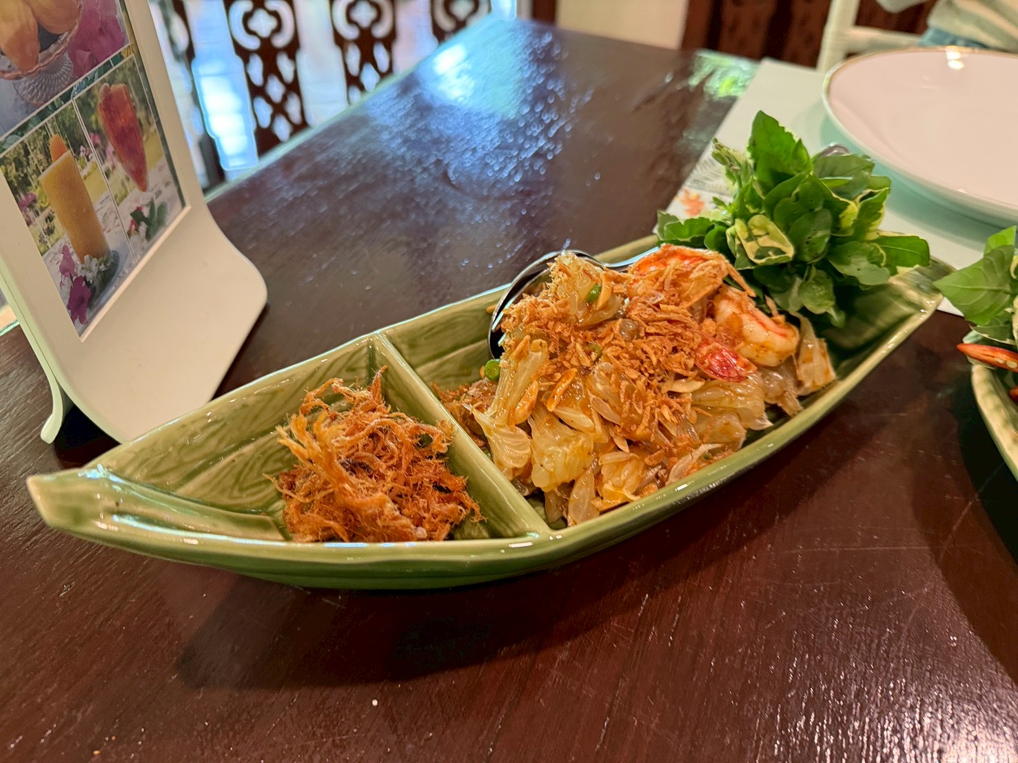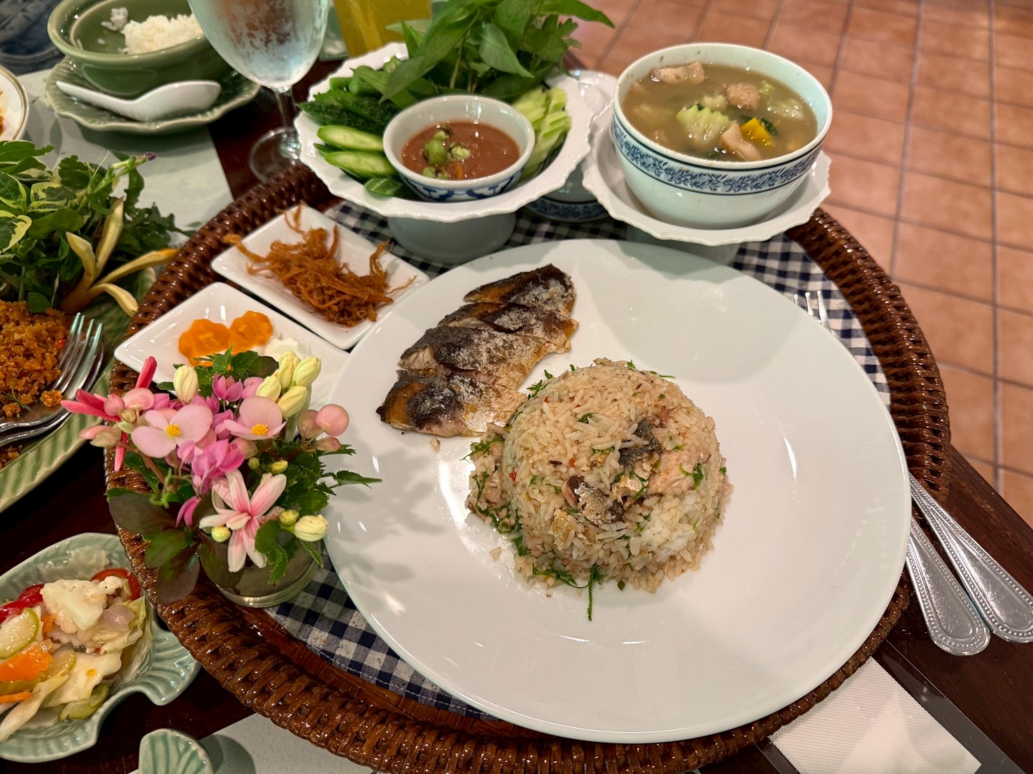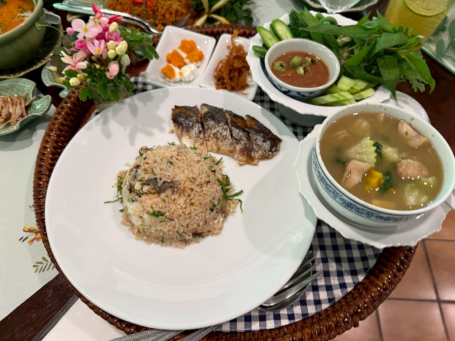 อร่อยจัดสำรับสวยงาม มีเครื่องเคียงปลาทูทอด ผักสด น้ำพริกกระปิ ไข่เค็ม และ แกงเลียงกุ้งสดมาให้ อร่อยดูดีคุ้มราคา 350 +vat เลย