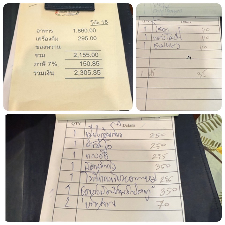 6 เมนูรวมเครื่องดื่ม ไม่ได้ทานขนมหวานเพราะว่าจะเก็บท้องไปเกาะเกร็ด 2300 กว่าบาท