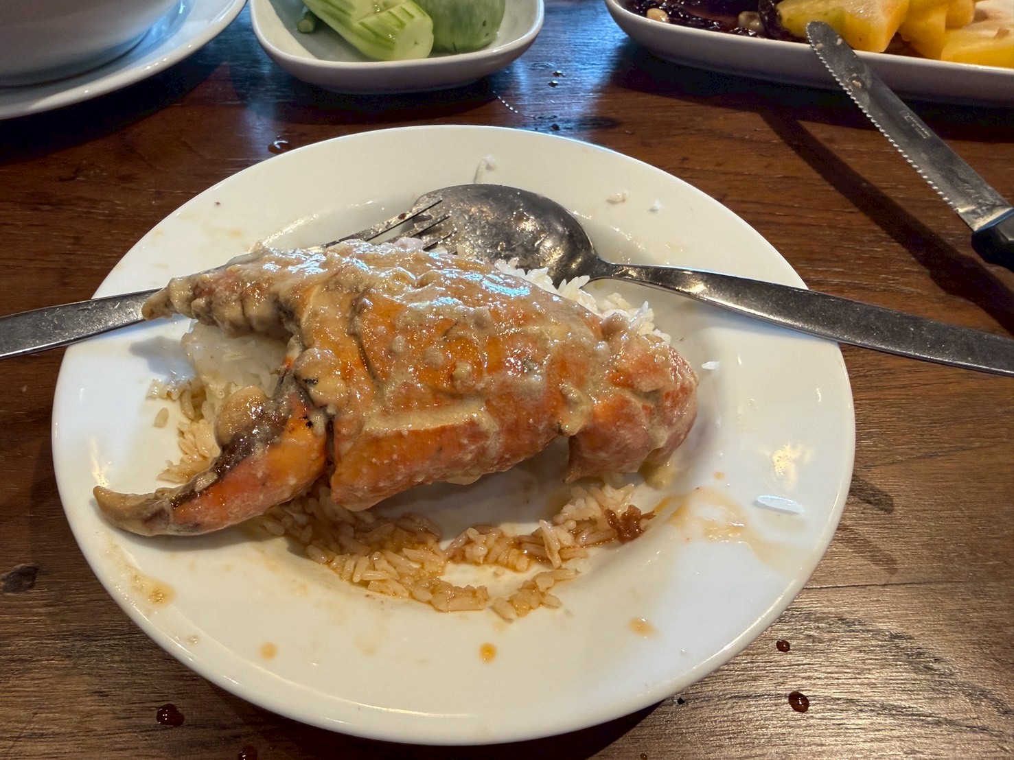 ปูสดหวานเนื้อแน่น ก้ามทั้งสองโตมาก น่าจะโตสุดที่เคยกินก้ามเดียวเกือบ เต็มจาน