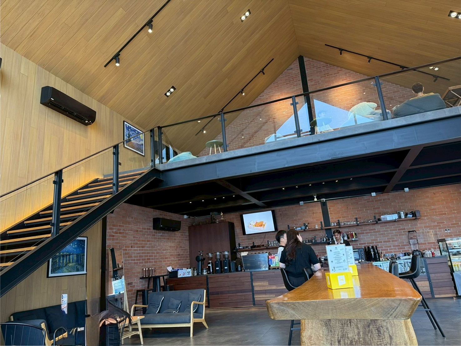 เห็นร้านเค้า แล้ว ได้ไอ เดีย อยากแกลลอรี่ภาพ แบบอาคารสูงโปร่งแบบนี้ เห็นชั้นลอย และบันได เกิดไอเดีย ทำชั้นลอยทั้งสองด้าน แล้ว ก็บันได้ ทั้งสองด้านรวม สี่อัน ให้เดินไล่ ดูรูปตามผนัง น่าจะ เวิอร์ค