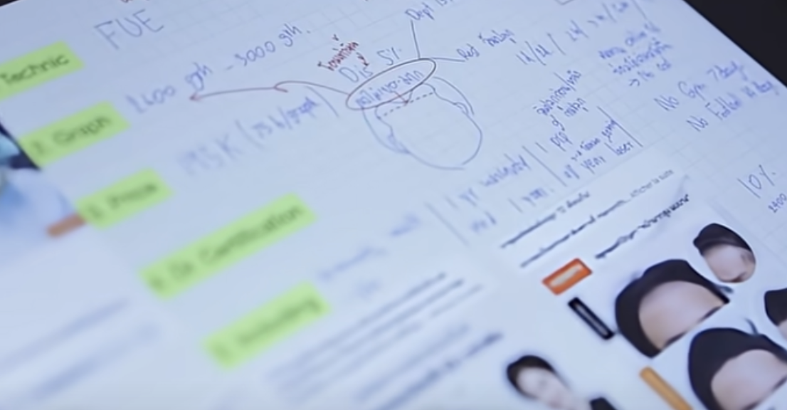 ก็หาข้อมูลมาเยอะพอสมควร ผมทำข้อมูลมาค่อนข้างละเอียดเลยล่ะ ถึงกับต้องจดในไอแพดเลย เราจะได้เห็นภาพด้วยว่าคลินิกปลูกผมไหนดี สุดท้ายผมตัดสินใจเลือกไปปรึกษาที่ Hairsmith Clinic
