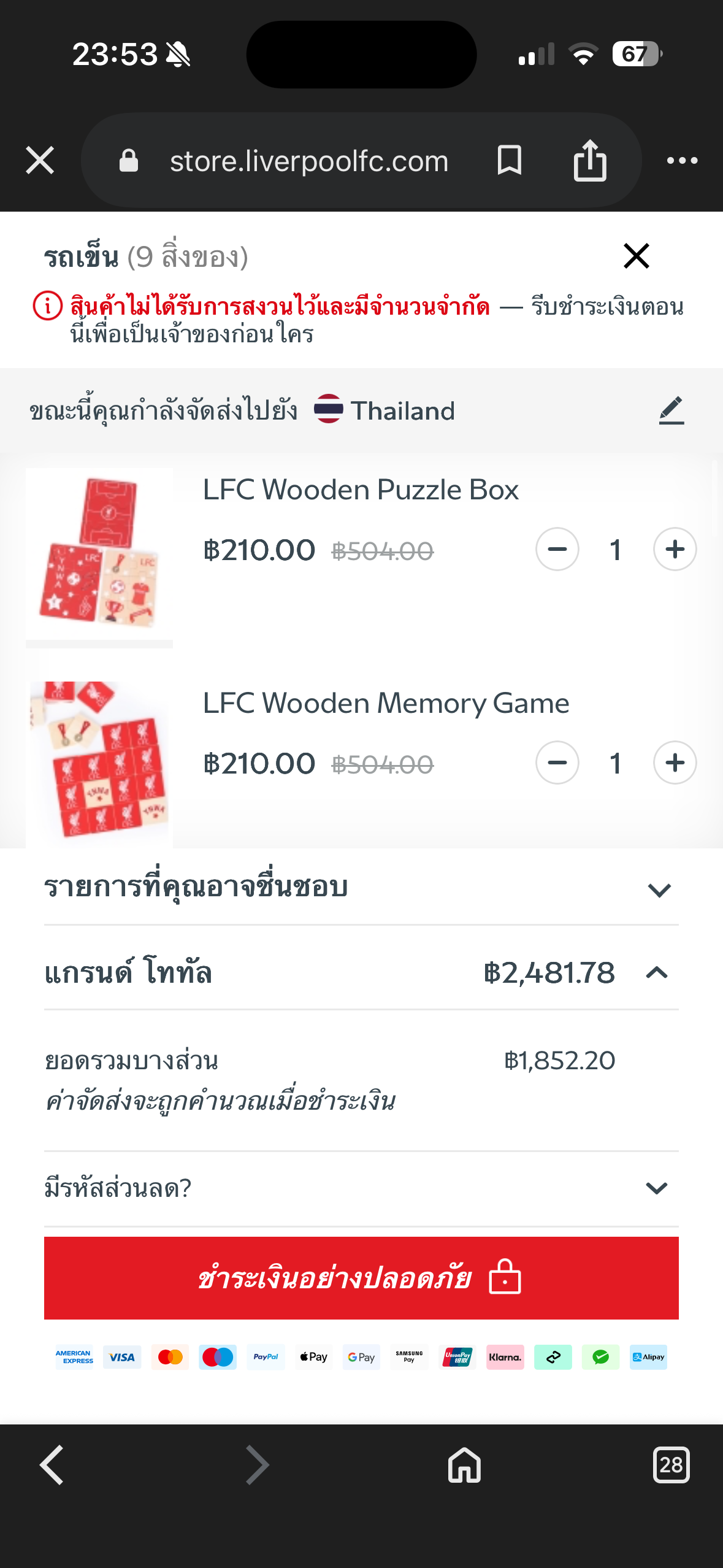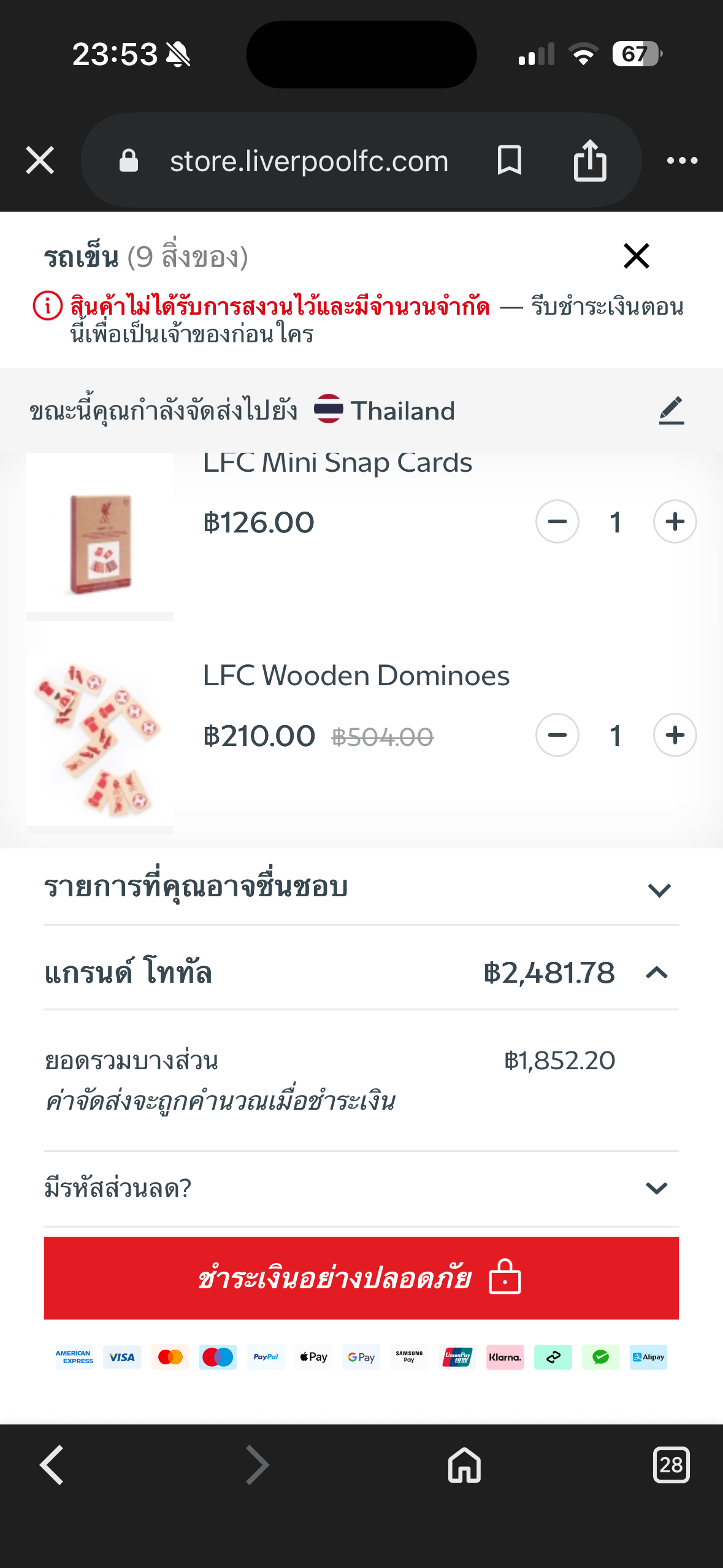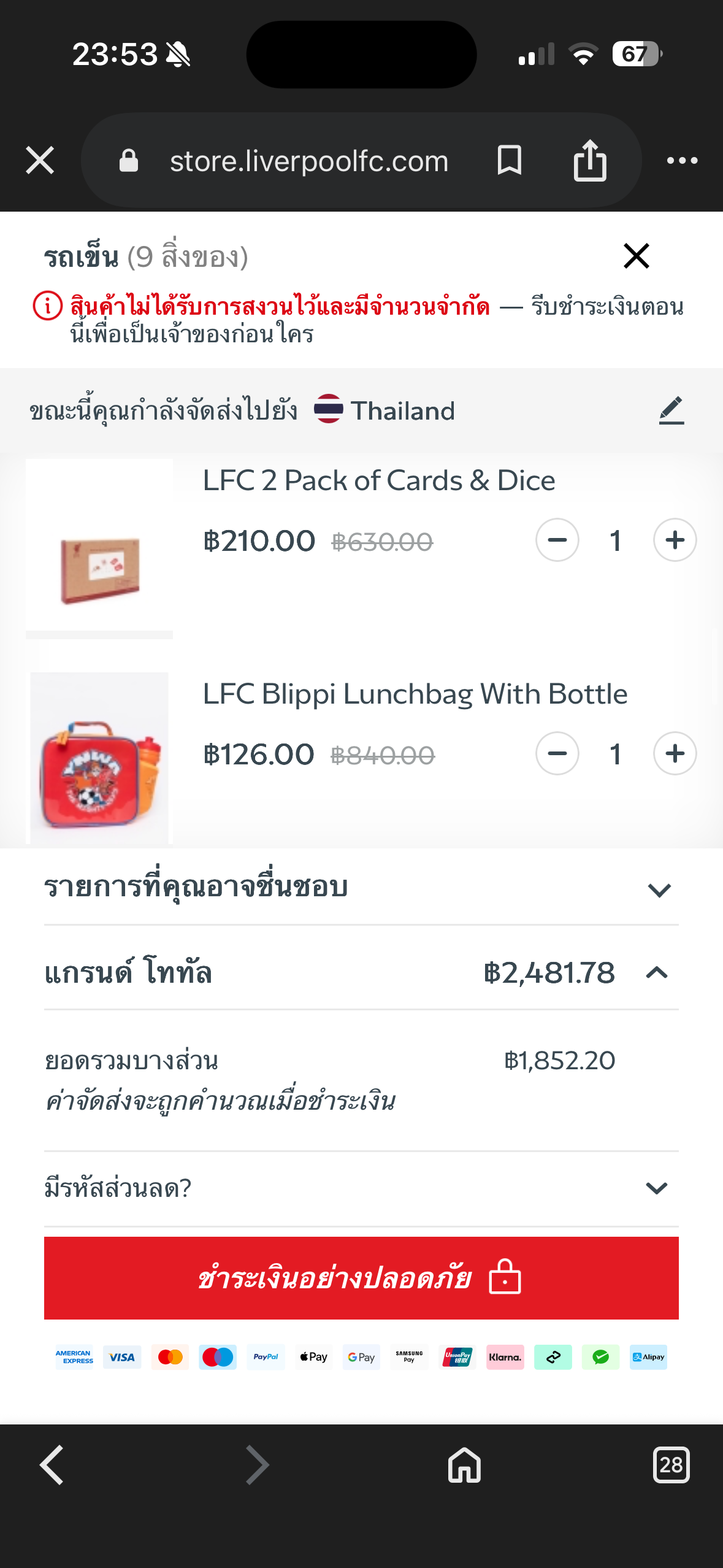 สินค้าliverpoolพวกนี้มีขายในไทยไหมคะ