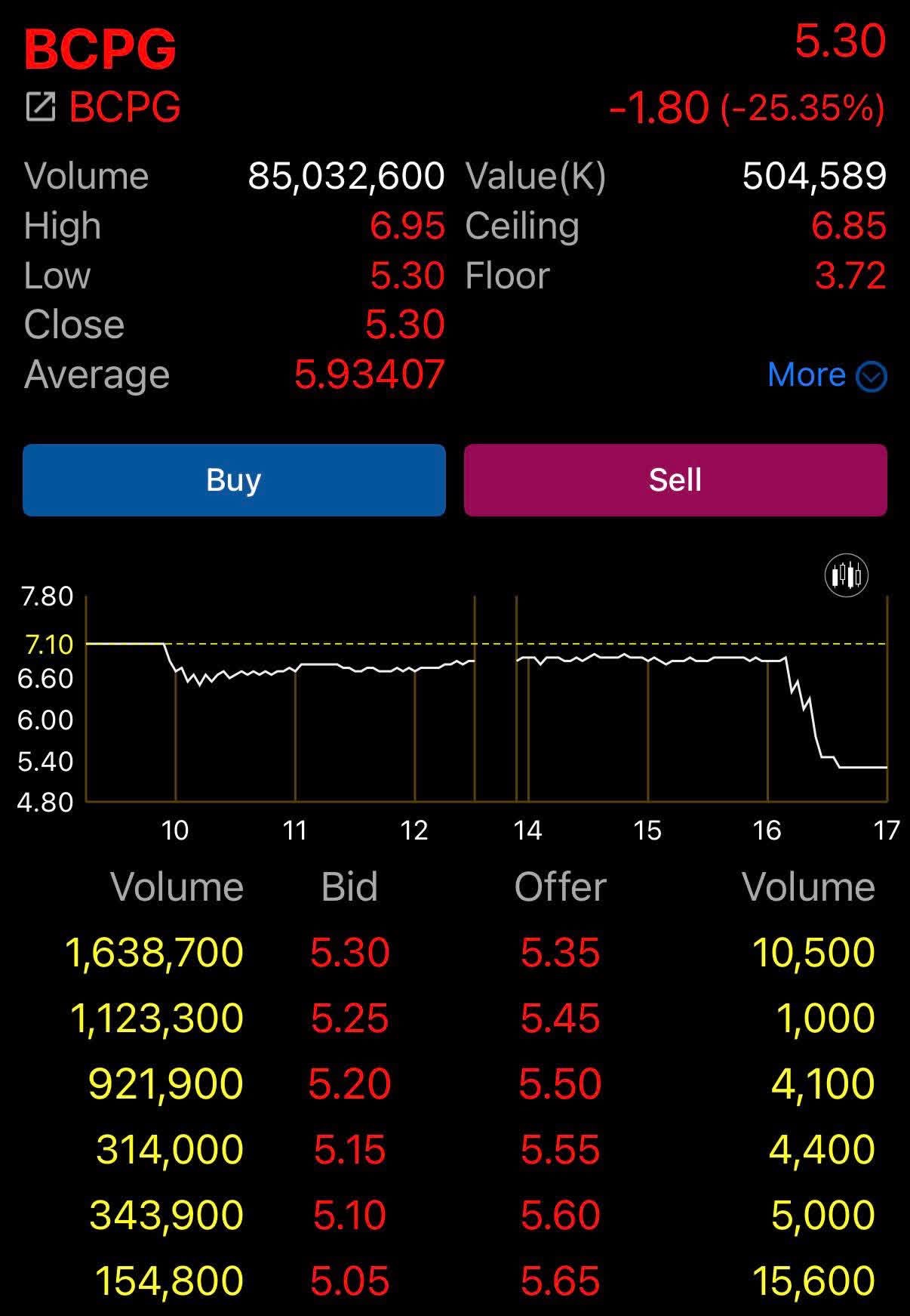 อยู่ดีๆวันนี้ก็มีคนยอมขายที่ราคาปิด 30 ล้านหุ้น ที่ 5.3 บาท ยอมได้เงินน้อยลงกว่าวันก่อนหน้า 25% เรียกว่าขายหนีตาย อยากได้เงินสดทันที
