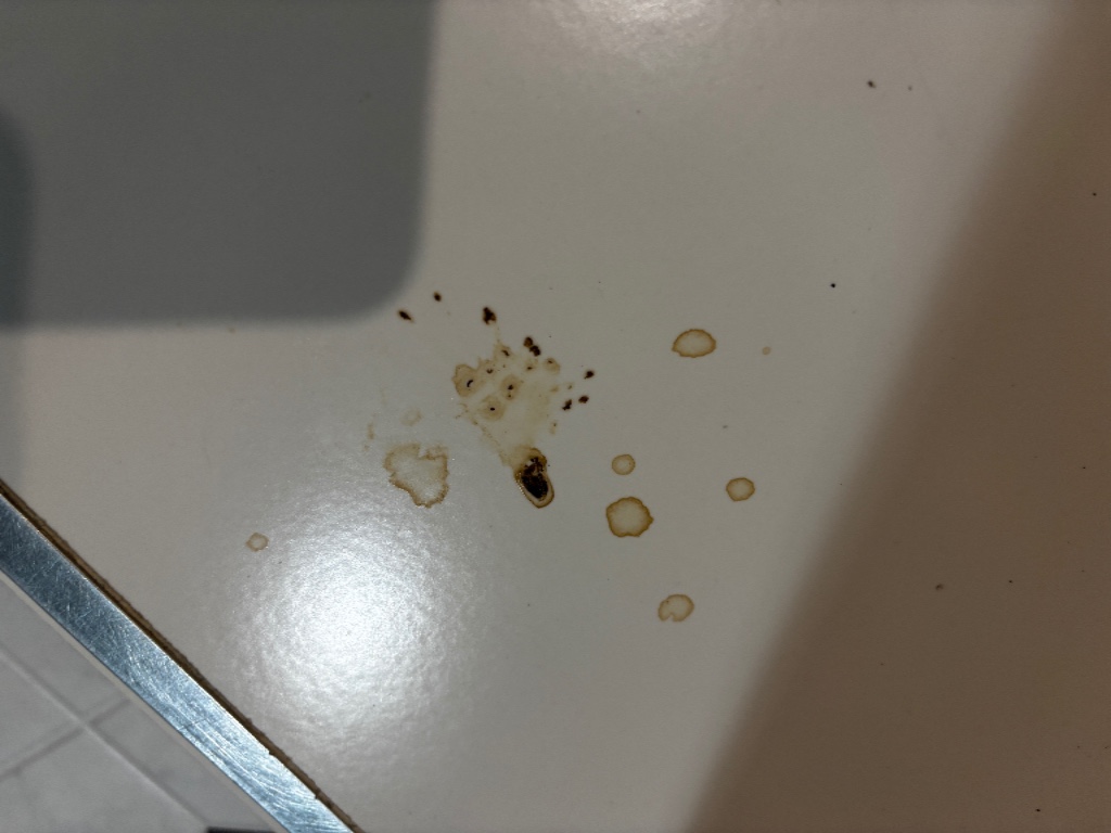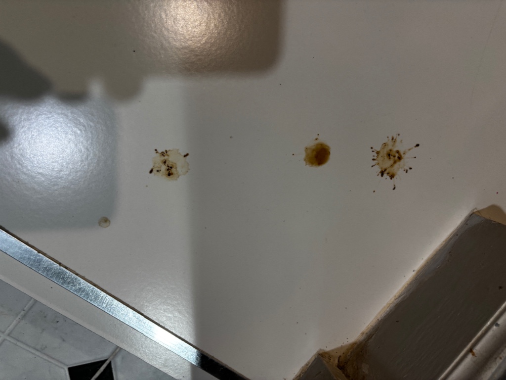 มีขี้อะไรบางอย่างตกอยู่ที่พื้นบ้านเรา ลักษณะคล้ายของเหลวๆมีเม็ดเล็กๆปน พอเช็ดออกจะกลายเป็นคราบสีน้ำตาลฝังบนกระเบื้อง ทีนี้จะฝังติดไปเลยค่ะ ทำความสะอาดไม่ออก รบกวนเพื่อนๆที่พอจะทราบช่วยบอกหน่อยค่ะว่าเป