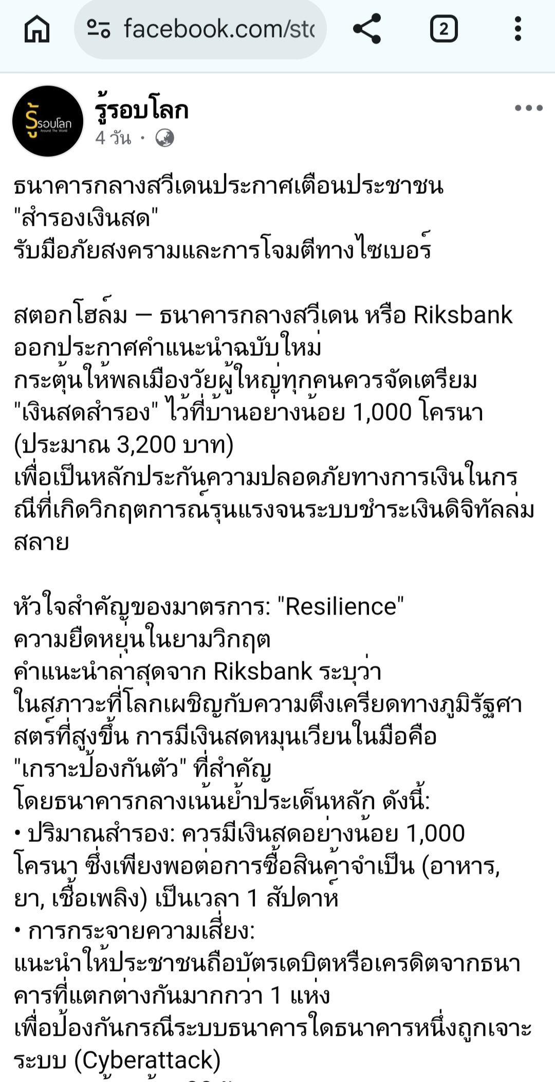 ตัวอย่างประเทศที่ประกาศให้เตรียมพร้อมเรื่องการสำรองเงินสดค่ะ