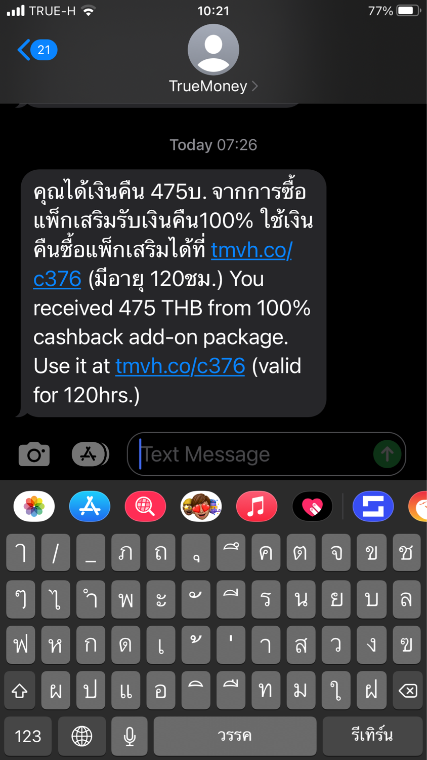 True move H ส่ง sms มาว่าสมัครแพ็คเกจให้