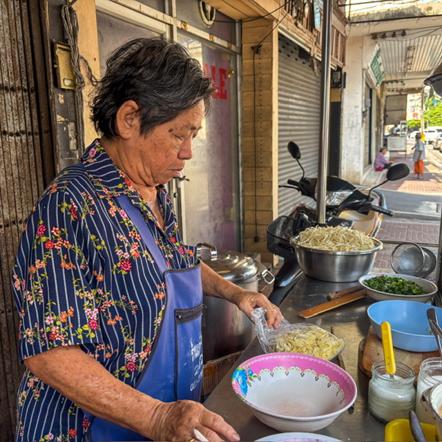 วันนี้มีจังหวะขอพาไปกิน "ก๋วยเตี๋ยวหมู ป๊อก ป๊อก ศรีราชา" ร้านนี้ไม่ได้มีชื่อเป็นทางการ ไม่รู้ชื่ออะไร ผมเคยรีวิวไว้ครั้งนึง วันนี้มาคุยกันเป็นการเป็นงาน ป้าแกอายุ 70 ปี แกขายมาตั้งแต่สมัยปี 2520 เริ่มเป็นรถเข็นขาย ผมจำได้ว่าผมขายก๋วยเตี๋ยวแถวนั้น ผมจำความได้ก็เห็นแกเข็นขายแล้ว และแกบอกว่า จริงๆ แกขายมาตั้งแต่รุ่นพ่อแม่แก ขายแถวๆ บริษัทศรีมหาราชา แกมาขายต่อเพราะพ่อแม่ทำไม่ไหว ถ้ารวมๆ แกบอกว่าน่าจะมากกว่า 70 ปี โน่น