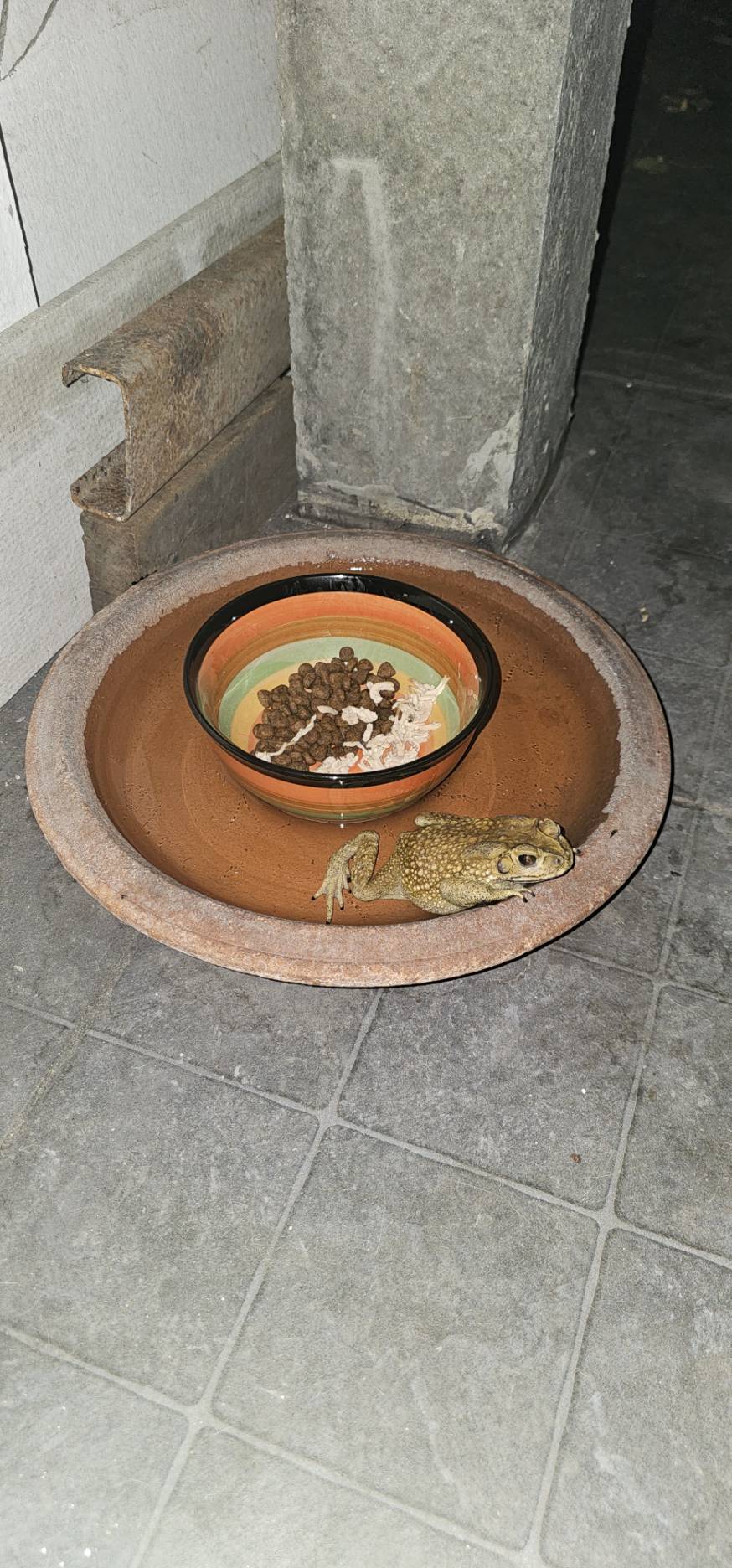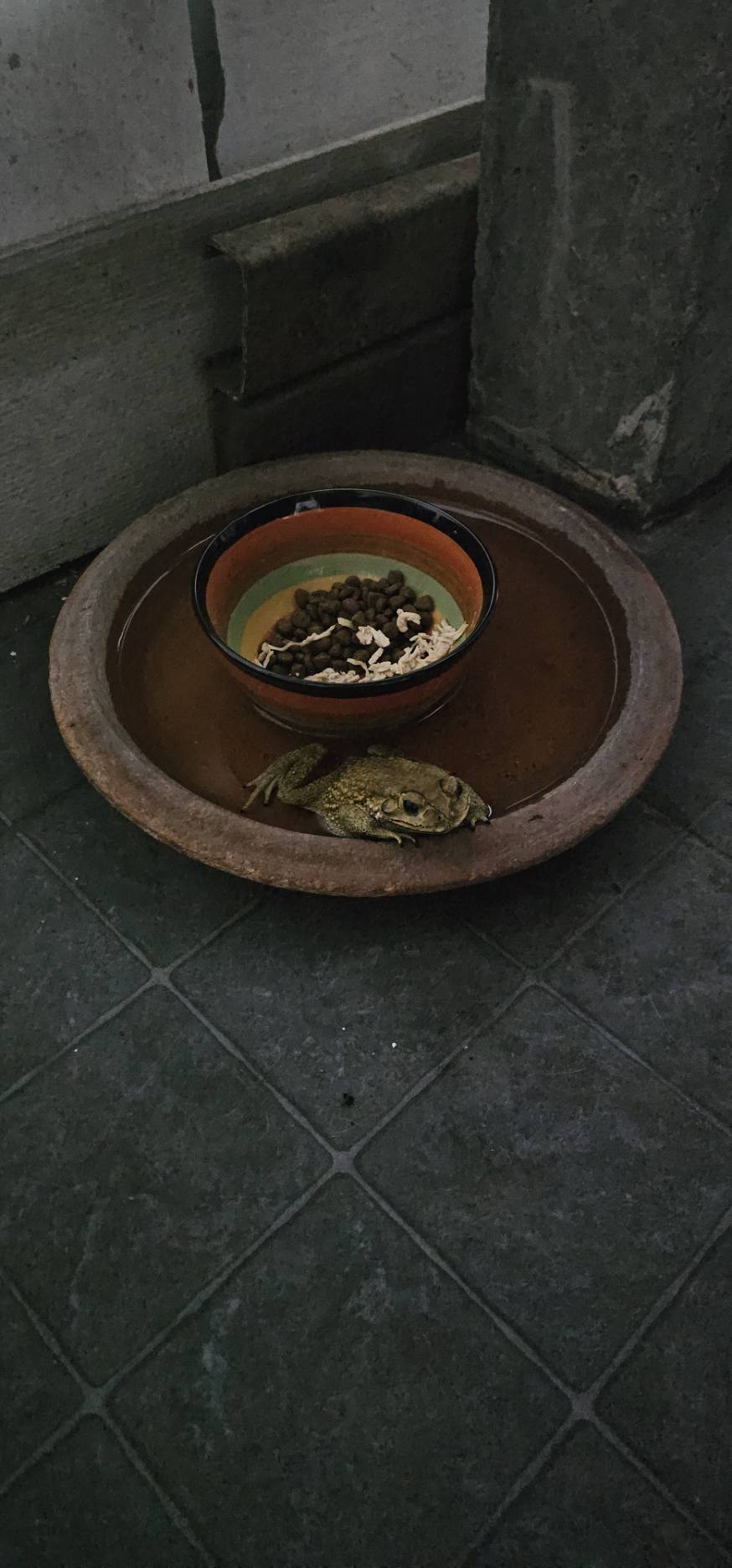 อากาศร้อนมากแบบนี้ เคยเห็นน้องหมาจะคลายร้อนโดยการไปนอนแช่น้ำ แต่เราเดินออกมาเจอคางคกลงไปแช่น้ำ ต้องอมยิ้มเลย มันก็น่ารักนะ (เราไม่ได้รังเกียจ หรือกลัวเขา แต่บางคนจะไม่ชอบคางคกเลย) เขานอนแช่นานเป็นชมเลย แล้วก็กระโดดออกมา
