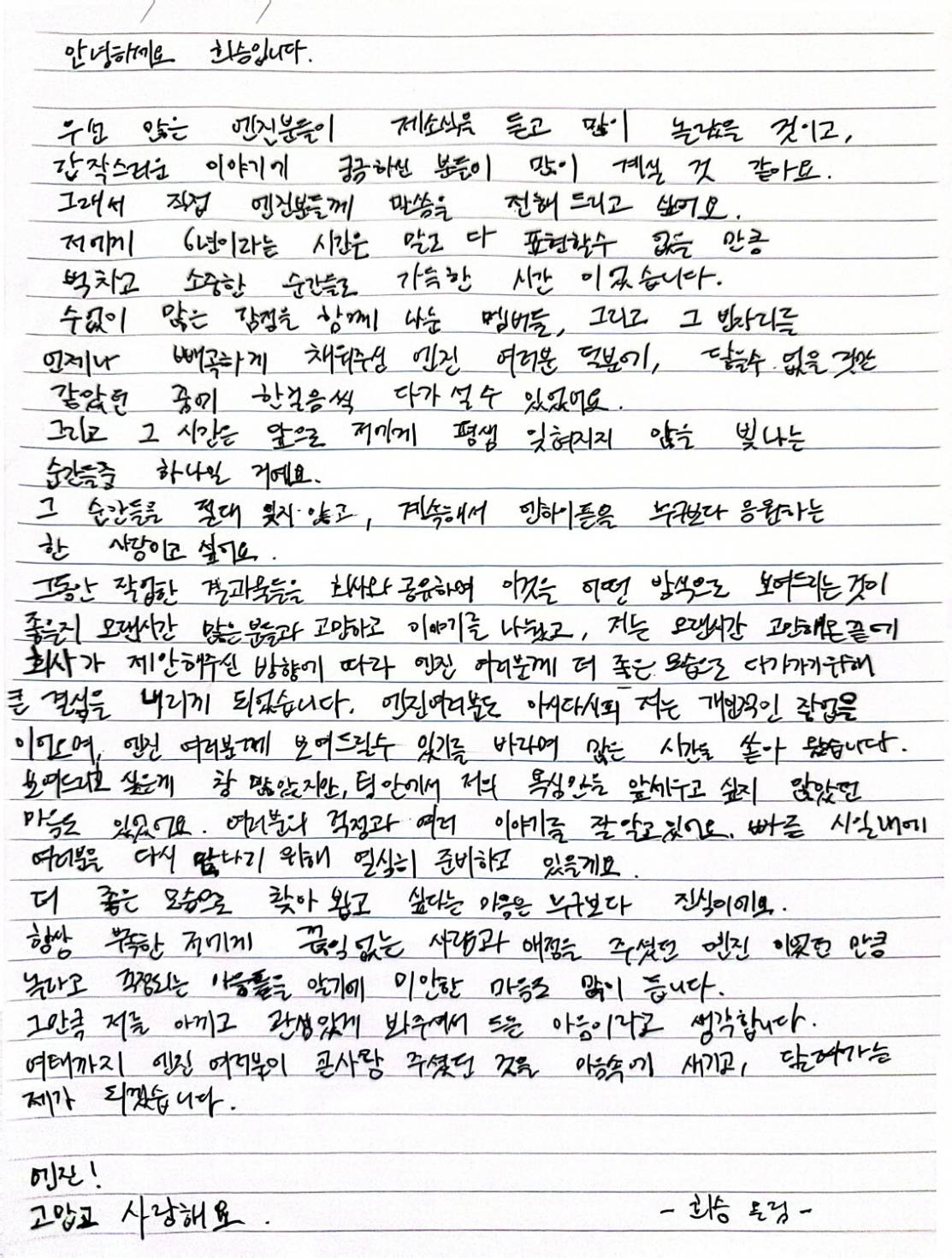 จดหมายลายมือจาก HEESEUNG