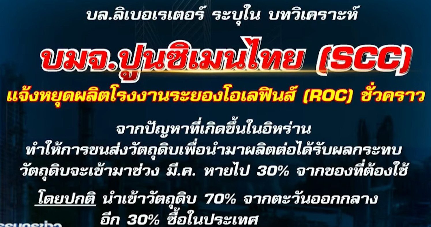 SCC สั่งปิดโรงงาน ROC ชั่วคราว รับพิษอิหร่านทำวัตถุดิบหาย 30% บล.ลิเบอเรเตอร์ ระบุในบทวิเคราะห์ว่า ... เม่าเนิร์ด