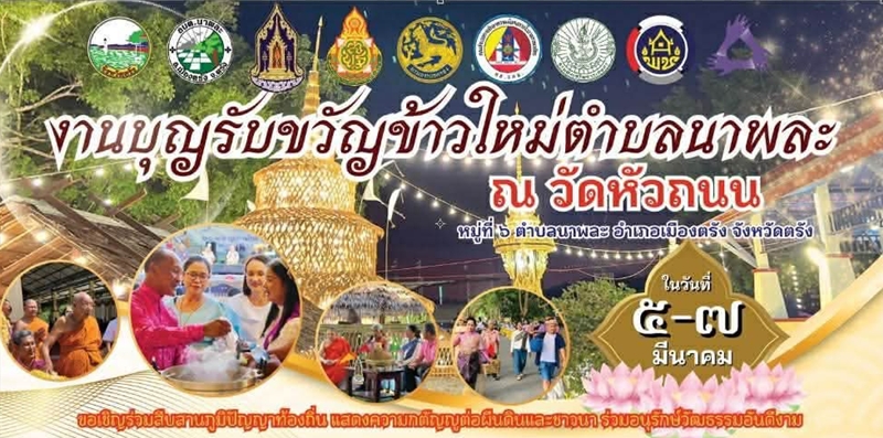 เมื่อวันที่ 5-7 มีนาคม 2569 ที่ผ่านมามีประเพณ๊ที่น่าสนใจในพื้นที่ตำบลนาพละ อำเภอเมือง จังหวัดตรังค่ะ ชื่องาน "บุญรับขวัญข้าวใหม่ตำบลนาพละ" จัดขึ้นที่ วัดหัวถนน ภายในงานมีกิจกรรมที่น่าสนใจหลายอย่าง วันนี้เราเอาภาพมาฝากค่ะ