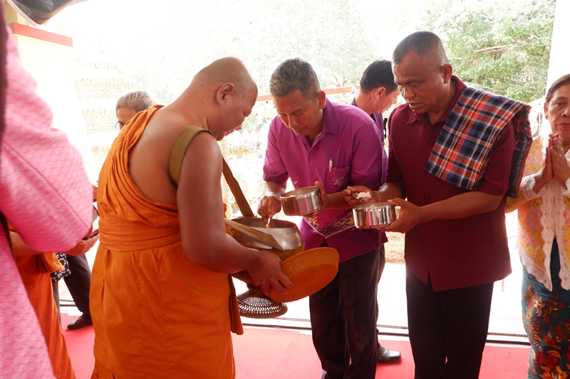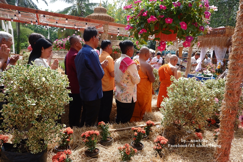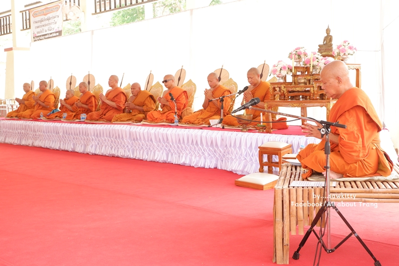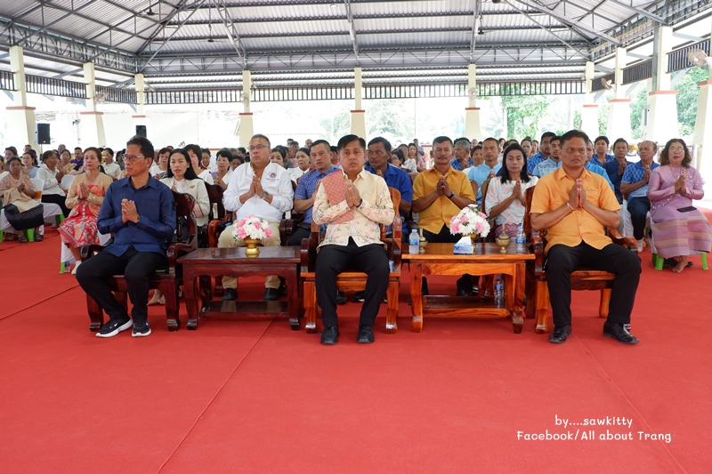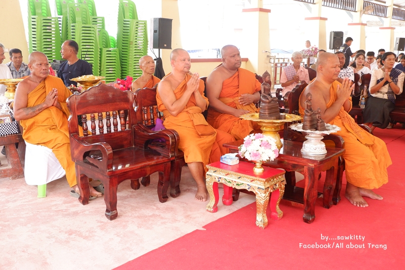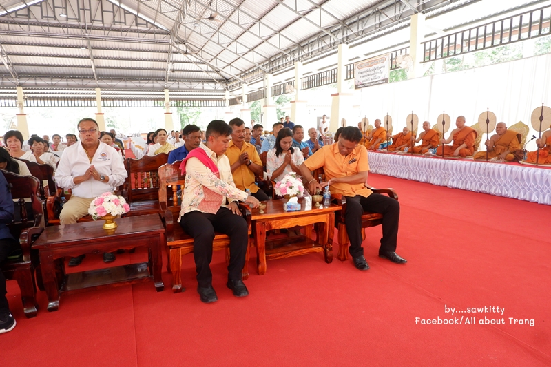 ตอนนี้ประธานในพิธีมาแล้วค่ะ มีพระราชวรากร เจ้าคณะจังหวัดเป็นประธานฝ่ายสงฆ์ และนายจักรพงศ์ รัชนีกุล ปลัดจังหวัดตรังเป็นประธานฝ่ายฆราวาส พร้อมเจ้าคณะอำเภอเมืองตรัง และหัวหน้าส่วนราชการหลายท่านมาร่วม