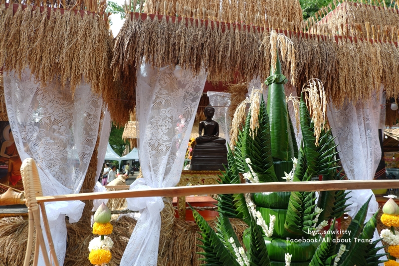 ส่วนข้าวจะไปตั้งไว้ที่ศาลาสำหรับทำขวัญข้าวช่วงเย็น
