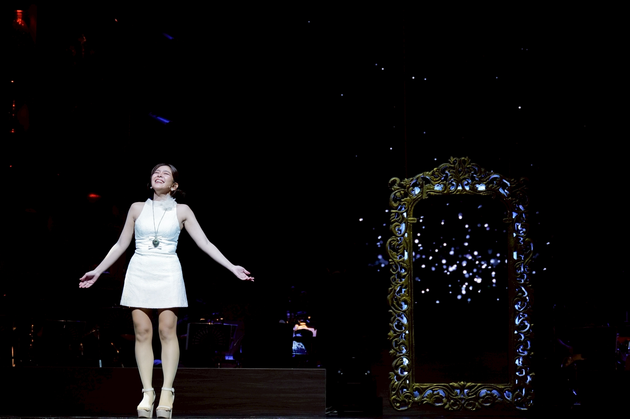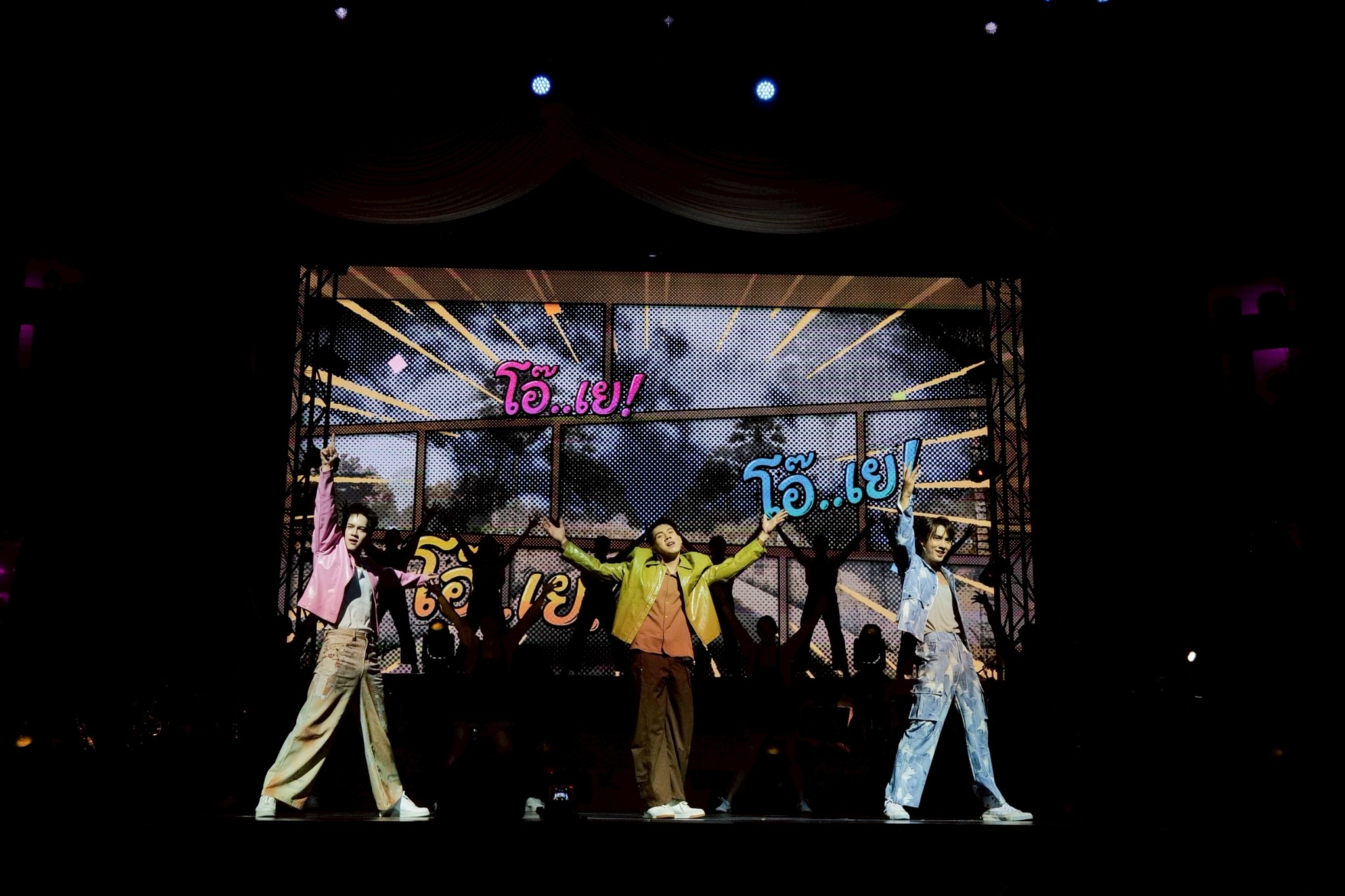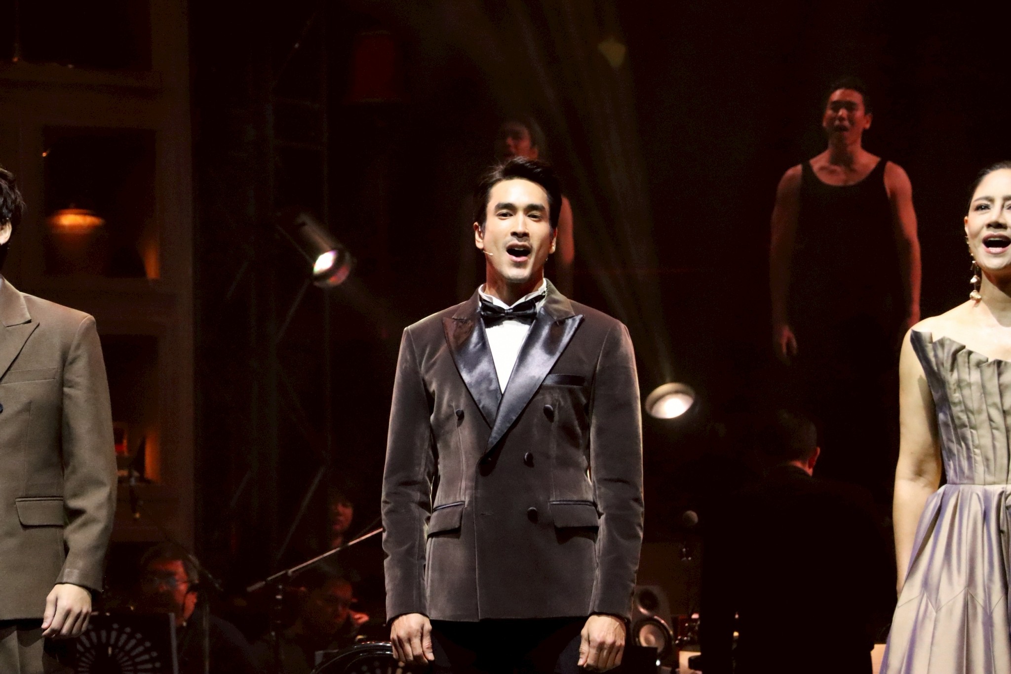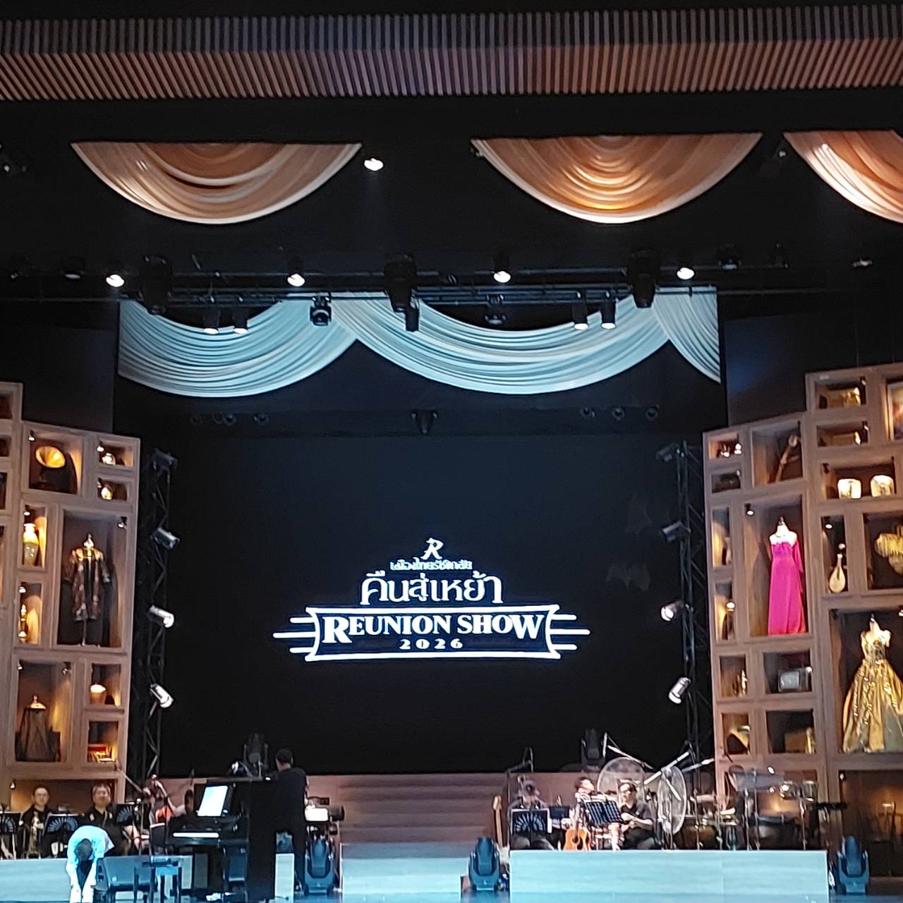 ครั้งนี้โชว์กึ่งคอนเสิร์ต วงดนตรีเลยได้อยู่บนเวที ไม่ต้องแอบอยู่ข้างล่างด้านหน้าเหมือนเคย