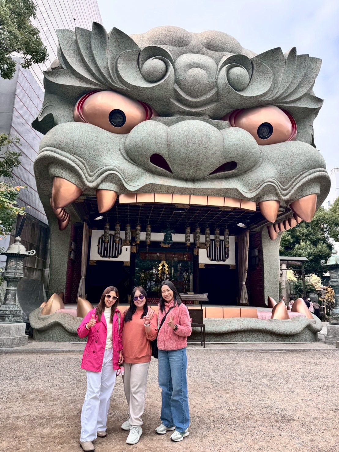 ฝากกระเป๋าเสร็จก็ไปต่อ ศาลเจ้านัมบะยาซากะ ค่ะ นั่ง Metro จากสถานี Dobutsuen-Mae ไปลง Namba จากร้านฝากกระเป๋าจะมีทางลงเชื่อมต่อรถไฟใต้ดินค่ะ สะดวกมากๆ ถึงสถานีนัมบะออกประตูไหนจำไม่ได้แล้วค่ะ ขึ้นมาด้านบนก็เปิด GPS เดินไปศาลเจ้านัมบะประมาณ 10 นาทีได้ค่ะ