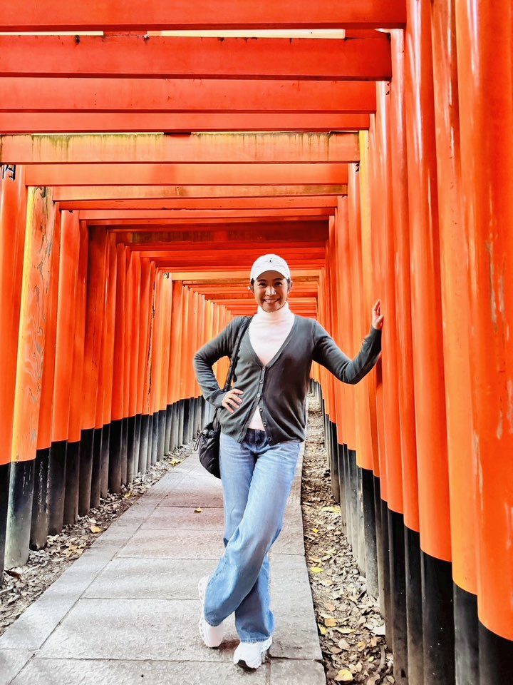 รอรถไฟช่วงตีห้า แสงสวยดีค่ะ จัดให้น้องไป 1 รูป (ประมาณ 7 โมงถึงสถานีอินาริ ออกจากสถานีก็เดินข้ามถนนเข้าศาลเจ้าได้เลยค่ะ คนจะเยอะตรงเสาโทริอิ บรรดาทัวร์ฝรัง ทัวร์จีน มากันหลายกรุ๊ปค่ะ)