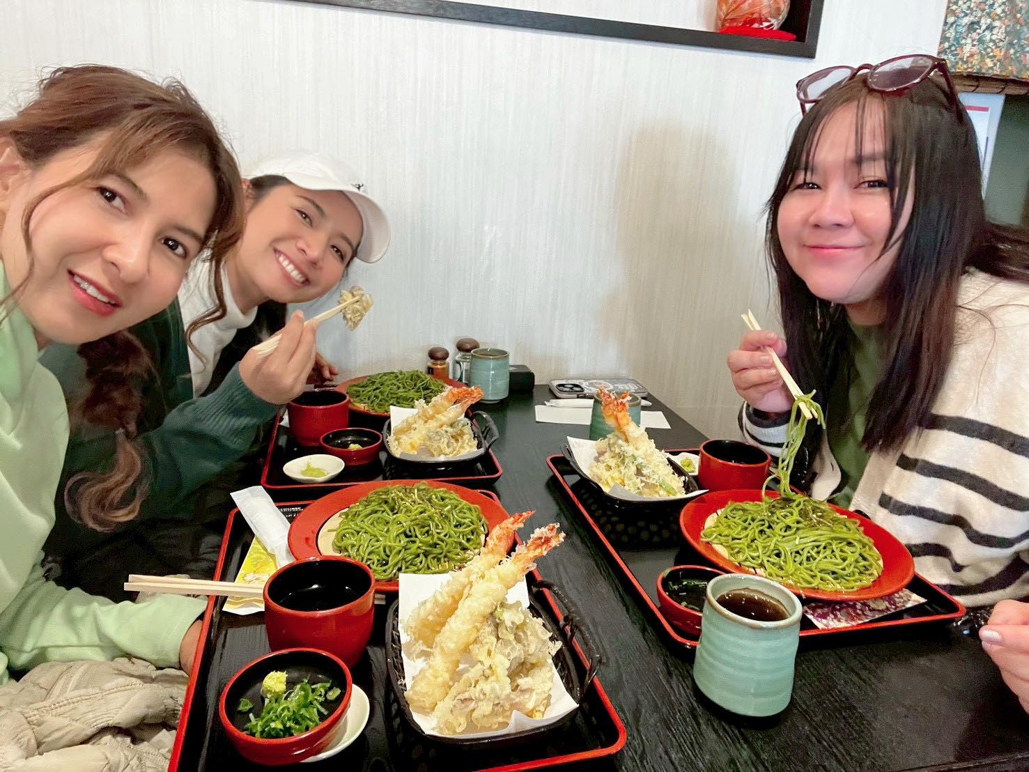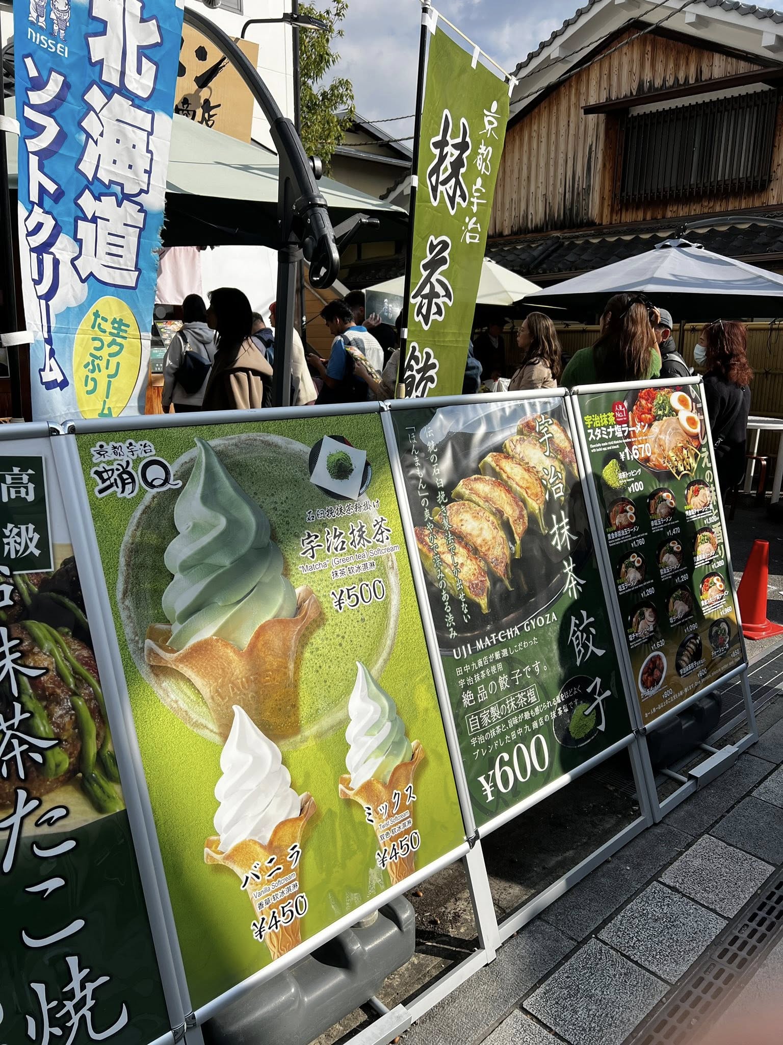 (วัดโดเบียวอิน ไม่ได้เข้าค่ะ คนเยอะ) เดินเล่นที่ ถนนชาเขียว (Byodoin Omotesando) ตลอดเส้นทางก็จะมีผลิตภัณฑ์จากชาเขียวค่ะ เดินสักพักก็หาไรกินค่ะ เดินไปเจอร้านนี้มีแต่คนเข้าก็เลยลองค่ะ เมนูนี้ถือว่าโอเคอร่อยค่ะ (หรือหิว) บะหมี่เย็นมีส่วนผสมของชาเขียว หอมชาเขียวค่ะ จัดไปคนละ 1 เซ็ท ไม่เหลือแม้แต่น้ำค่ะ ใครมาที่นี่แนะนำต้องลองค่ะ (ชื่อร้านเป็นภาษาญี่ปุ่นอ่านไม่ออก และไม่ได้ถ่ายมาด้วยค่ะ)