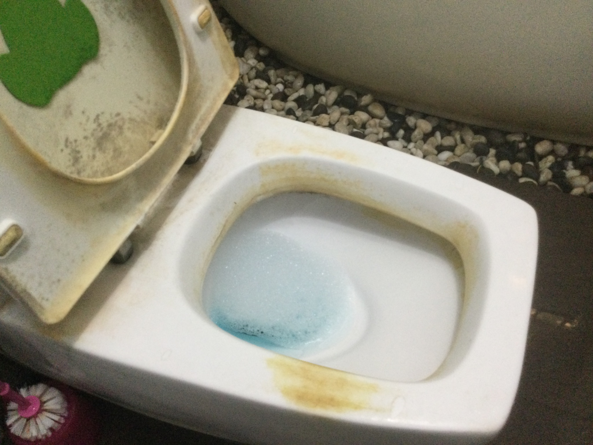 ช่วยแนะนำ วิธีขจัดคราบตะกรันหรือคราบสนิมที่ไหลลงมาเป็นทาง ในโถชักโครกครับ