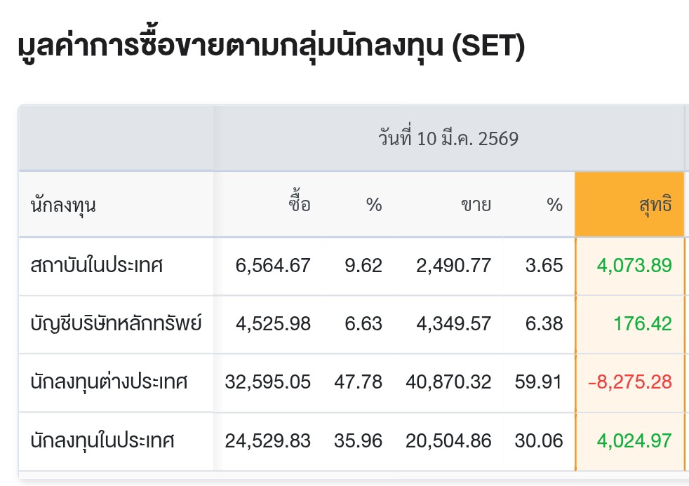 Sinthorn Summary 10/3/2569 : ต่างชาติขายสุทธิ -8,275.28 ลบ.