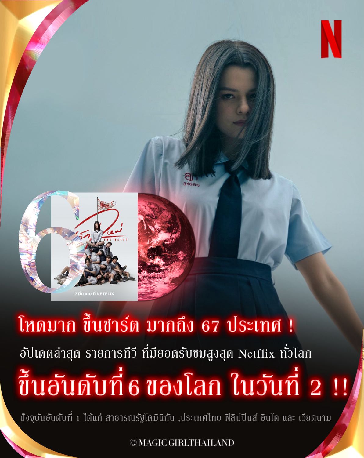 #เด็กใหม่TheReset ทุบสถิติสตรีมโลก Netflix ของซีรีส์ไทยสะเทือนไป 67 ประเทศ ควบแตะอันดับ 6 โลกตั้งแต่ EP1