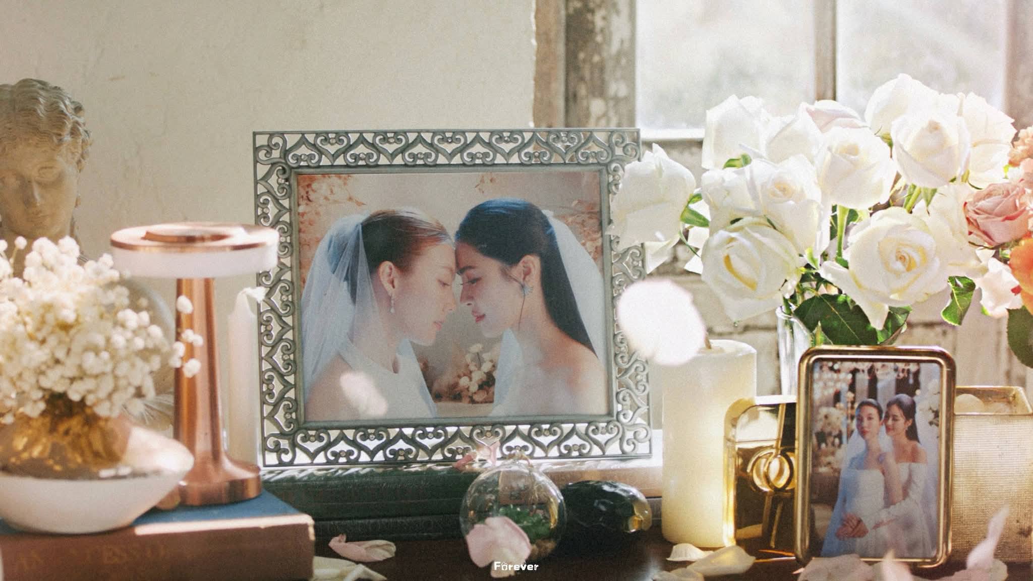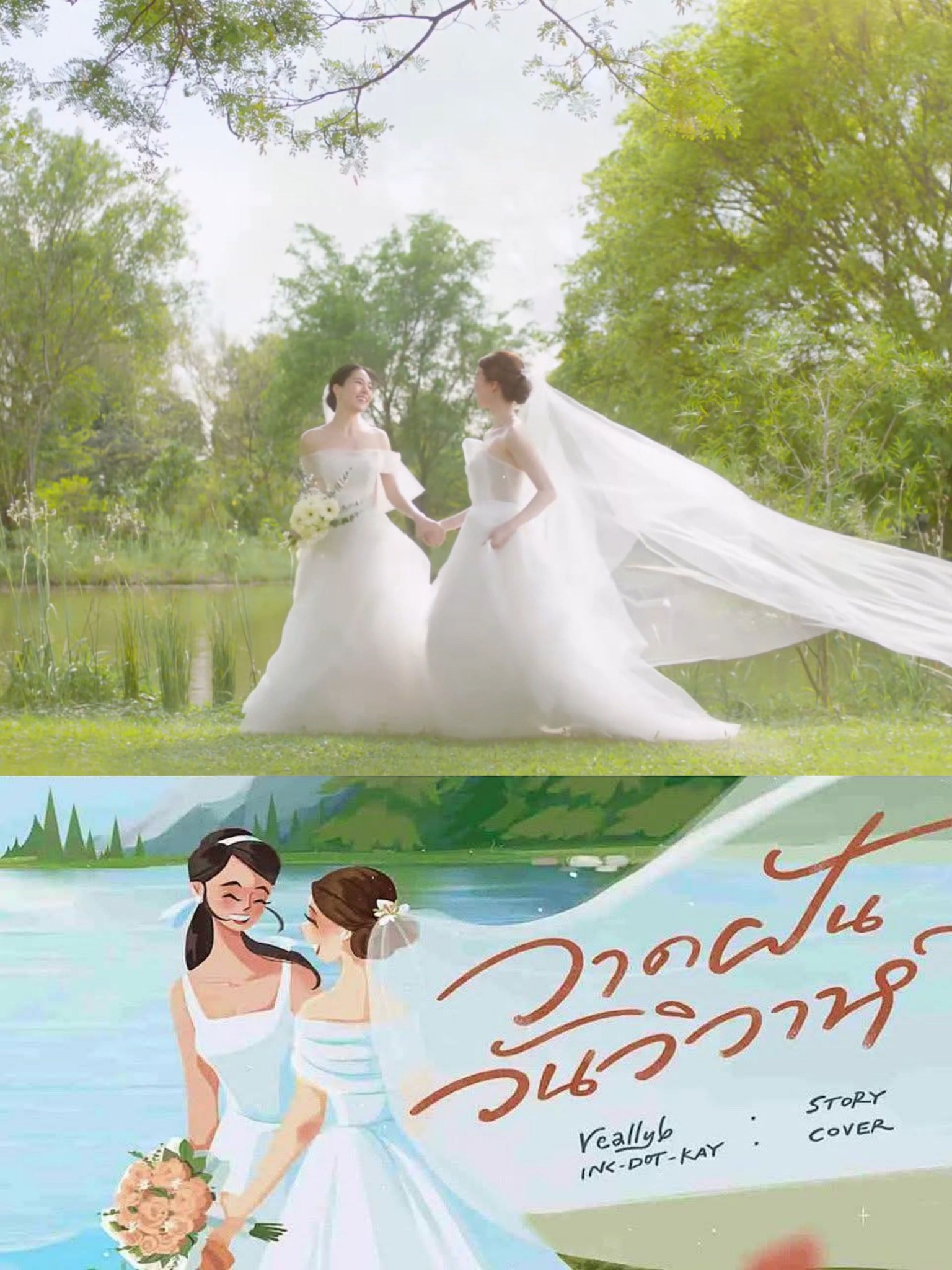 โดยคลิปดังกล่าวมีความยาว 51 วินาที เผยให้เห็นบรรยากาศงานวิวาห์ที่สุดแสนจะอบอุ่น และโรแมนติก โดยมี “พี่รัญชน์” (หลิงหลิง) และ “น้องนีน” (ออม) ปรากฏตัวในชุดเจ้าสาวสีขาวบริสุทธิ์ ดีไซน์สวยหรู ท่ามกลางรอยยิ้มและสายตาที่สื่อความหมายลึกซึ้งถึงกันและกัน
