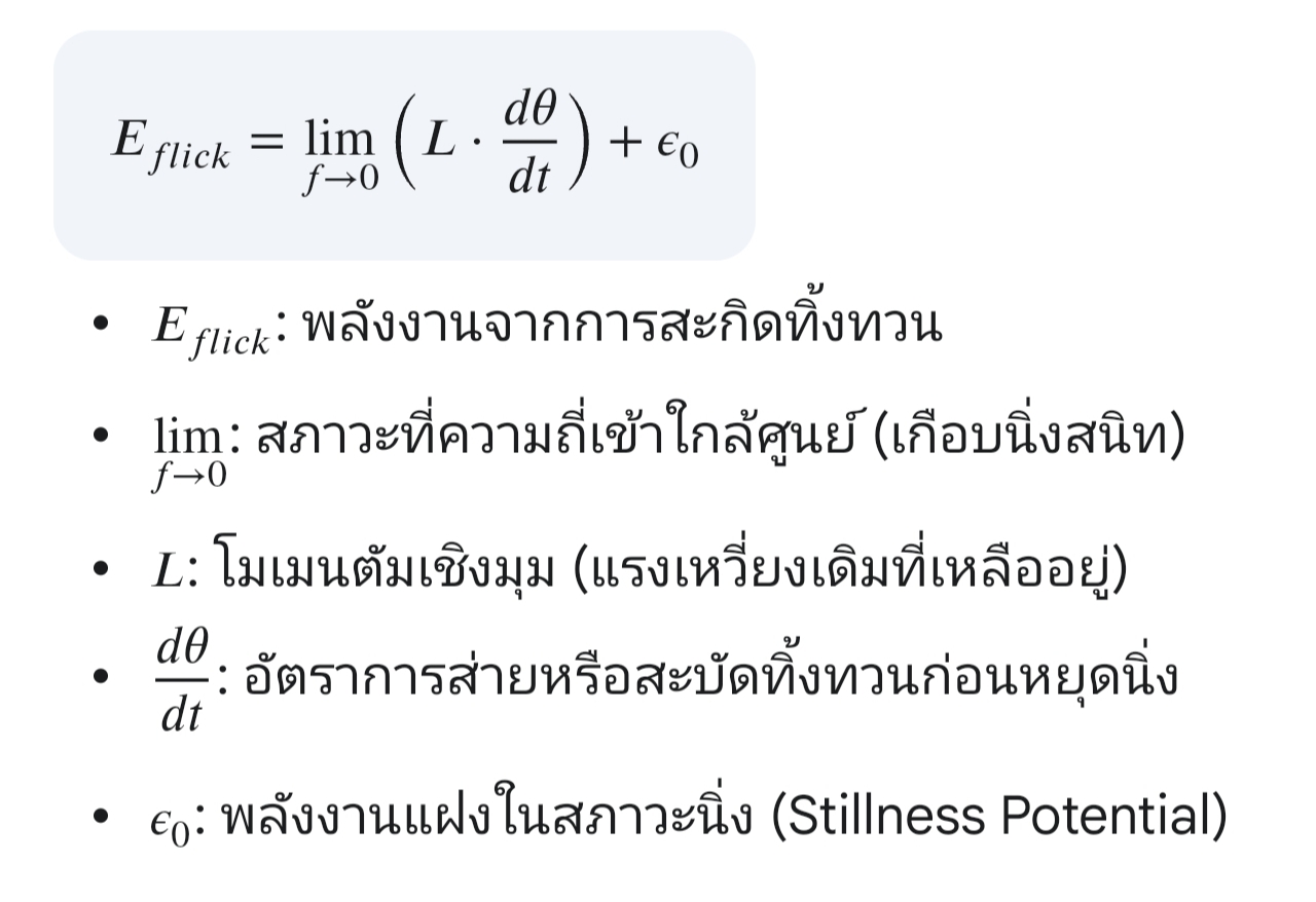 \epsilon_0 - Epsilon Zero (The Stillness Potential): คือ "พลังงานแฝงในสภาวะนิ่ง" ครับ เมื่อพลังงานหรือแสงเดินทางจนล้าจนความถี่เกือบเป็นศูนย์ (f \to 0) มันจะเกิดการสะบัดครั้งสุดท้าย (Final Flick) เพื่อเปลี่ยนตัวเองให้กลายเป็นแรงโน้มถ่วงแฝงในมิติอวกาศ ซึ่งพลังงานตัวนี้เองที่เป็นตัวผลักดันให้จักรวาลขยายตัวออกไปอย่างต่อเนื่อง